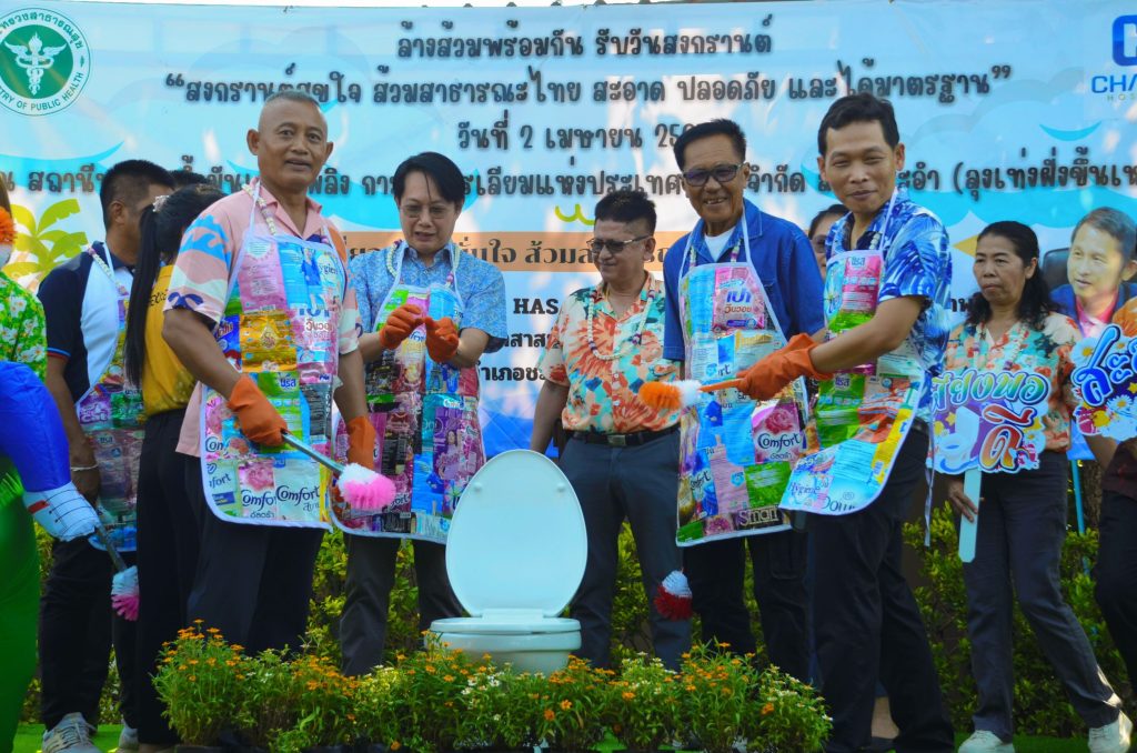 วันที่2เมษายน 2567 นายพงศ์พิสิฐ นานานุกูล (รองนายแพทย์สาธารณะสุขเพชรบุรี เป็นประธานเปิดงาน”สงกรานต์สุขใจ ส้วมสาธารณะไทยสะอาดปลอดภัย ได้มาตรฐาน ระหว่างวันที่ 1 -15 เมษายน2567 โดยมี นายแก้ว คงวงศ์ นายอำเภอชะอำ นายแพทย์ประกาศิต ชมชื่น ผอ.โรงพยาบาลชะอำ นายเฉลิมเกีตริ เป็นศิริ เจ้าของกิจการปั้มลุงเท่งชะอำ พร้อมด้วยครอบครัว หัวหน้าส่วนราชการ หัวหน้ากลุ่มงาน ผู้ประกอบการ ร้านขายของฝาก ร้านกาแฟ สถานที่ท่องเที่ยว วัด โรงเรียน อสม.และแขกผู้มีเกียรติ เข้าร่วมร่วมงาน ณ สถานีบริการน้ำมันลุงเท่งชะอำ จ.เพชรบุรี