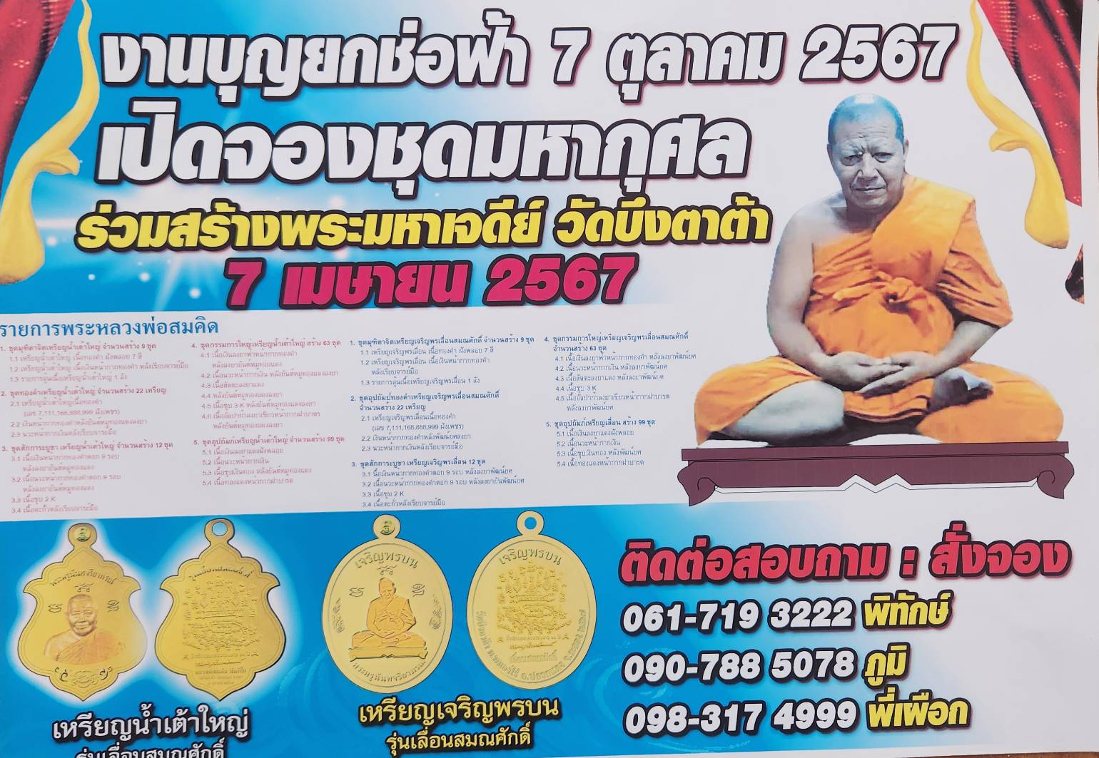 เมื่อเวลา 14.00 น.วันที่ 7 เม.ย.ที่ศาลาการเปรียญวัดบึงตาต้า ต.หนองไร่ อ.ปลวกแดง จ.ระยอง พระครูนันทจริยาภรณ์ หรือหลวงพ่อสมคิด เจ้าอาวาสวัดบึงตาต้า นายพิทักษ์ ศิริวงศ์ ประธานจัดสร้างวัตถุมงคลวัดบึงตาต้า นายเบญจพล ฟ้าประทานพรชัย ไวยาวัจกรวัดบึงตาต้า แถลงข่าวการจัดสร้างวัตถุมงคลเหรียญเจริญพรบนเนื้อทองคำ และ เหรียญน้ำเต้าใหญ่เนื้อทองคำ รุ่นเลื่อนสมณศักดิ์ พระครูนันท์จริยาภรณ์ หรือหลวงพ่อสมคิด วัดบึงตาต้า