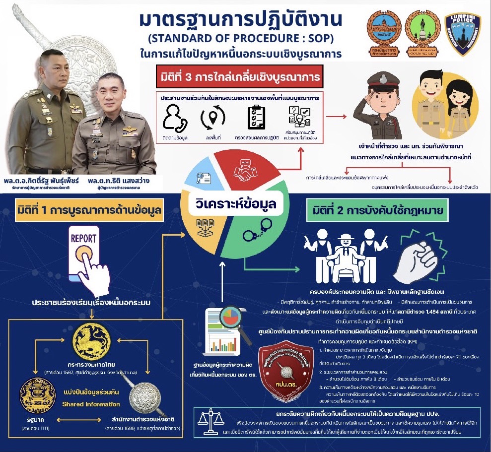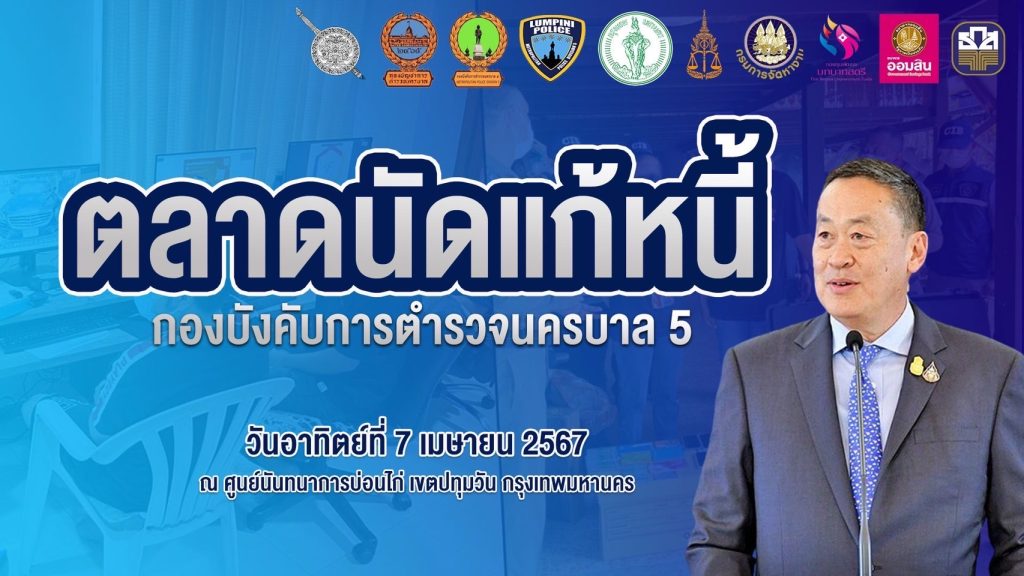 พล.ต.อ.กิตติ์รัฐ พันธุ์เพ็ชร์ รองผู้บัญชาการตำรวจแห่งชาติ รักษาราชการแทนผู้บัญชาการตำรวจแห่งชาติ (รอง ผบ.ตร.รรท.ผบ.ตร.) สั่งการกองบัญชาการตำรวจนครบาลเร่งดำเนินการตามนโยบายของ นายเศรษฐา ทวีสิน นายกรัฐมนตรีและรัฐมนตรีว่าการกระทรวงการคลัง ที่ได้กำชับเรื่องการแก้ไขปัญหาหนี้นอกระบบในพื้นที่กรุงเทพมหานคร ให้เร่งดำเนินการภายในระยะเวลา 2 สัปดาห์ โดยให้ สน.ลุมพินี เป็นพื้นที่นำร่องจัดตลาดนัดแก้หนี้ โดยได้กำชับให้หน่วยงานในสังกัดกองบัญชาการตำรวจนครบาลในทุกพื้นที่ดำเนินการตามข้อสั่งการดังกล่าวอย่างเคร่งครัดทันที ซึ่งทางกองบัญชาการตำรวจนครบาลขานรับนโยบายดังกล่าว ดำเนินการจัดกิจกรรม “ตลาดนัดแก้หนี้” นำร่องในพื้นที่กองบังคับการตำรวจนครบาล 5