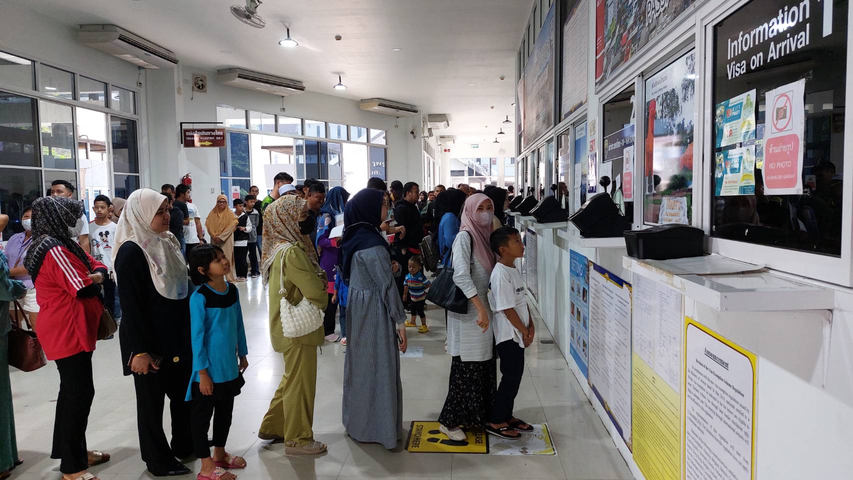 วันที่ 8 เม.ย. 2567 ผู้สื่อข่าวรายงานว่าในช่วงใกล้เทศกาลฮารีรายออีดิ้ลฟิตรีของพี่น้องชาวไทยมุสลิม บรรยากาศที่บริเวณด่านพรมแดน อ.เบตง จ.ยะลา ซึ่งอยู่ตรงข้ามกับอำเภอเปิงกาลันฮูลู รัฐเปรัก ประเทศมาเลเซีย ตั้งแต่ช่วงเช้าที่ผ่านมา มีชาวไทยมุสลิมที่มีภูมิลำเนาอยู่ในพื้นที่ 3 จังหวัดชายแดนภาคใต้ คือ ยะลา ปัตตานี และนราธิวาส ซึ่งได้เดินทางข้ามแดนไปขายแรงงานตามเมืองต่างๆ ของมาเลเซีย ได้ทยอยเดินทางกลับบ้านเพื่อเตรียมมาร่วมเฉลิมฉลองเทศกาลรายออีดิ้ลฟิตรี ทำให้บรรยากาศที่บริเวณด่านพรมแดน อ.เบตง เนืองแน่นไปด้วยนักท่องเที่ยวชาวมาเลเซียและแรงงานไทยในมาเลเซีย ต่างยืนต่อคิวประทับตราหนังสือเดินทางเข้าประเทศเป็นแถวยาว