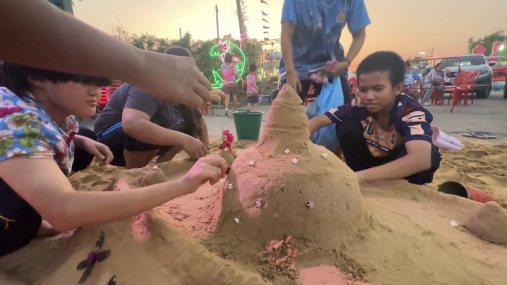 ชาวบ้านในพื้นที่ตำบลแหลมใหญ่ ร่วมก่อพระเจดีย์ทราย ที่มีมาเกือบ100ปีเหลือแห่งเดียวในสมุทรสงคราม เพื่ออนุรักษ์วัฒนธรรมท้องถิ่นในการขนทรายถวายวัดเพื่อนำเศษดินทรายที่ติดเท้าออกจากวัดไปมาคืนวัดในรูปพระเจดีย์ทรายถวายเป็นพุทธบูชาให้เป็นกุศลอานิสงส์ให้คงอยู่สืบไป