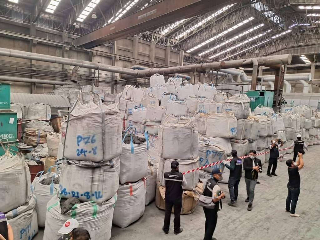 วันนี้( 10 เม.ย. 2567)เวลา 11.00 น.คณะของ ดร.ณัฐพล รังสิตพล ปลัดกระทรวงอุตสาหกรรม พร้อมด้วย นายจุลพงษ์ ทวีศรี อธิบดีกรมโรงงานอุตสาหกรรม นายพุทธิกรณ์ วิชัยดิษฐ์ อุตสาหกรรมจังหวัดสมุทรสาคร ดร.สุบรรณ มานะวิทยาการ นายก อบต.บางน้ำจืด เจ้าหน้าที่อุตสาหกรรมจังหวัดสมุทรสาครได้เข้าตรวจสอบอีกครั้งที่บริษัท เจ แอนด์ บี เมททอล จำกัด ตั้งอยู่เลขที่ 132 หมู่ 2 ต.บางน้ำจืด อ.เมืองสมุทรสาคร จ.สมุทรสาคร ซึ่งเป็นโรงงานแห่งแรกที่มีการตรวจพบว่า รับซื้อกากแร่แคดเมียม และกากสังกะสี มาจากจังหวัดตากมาเก็บไว้ภายในโรงงานจำนวนมาก เจ้าหน้าที่ได้เข้าตรวจค้นพบกากแร่แคดเมียม จำนวน 2,440 ตันเมื่อวันที่ 5 เม.ย.67 ที่ผ่านมา จากนั้นเจ้าหน้าที่ตำรวจ ปทส.ได้ติดตามจับกุมได้อีก 3แห่งแต่ยังไม่ครบจำนวนที่ขนย้ายออกมาจากต้นทาง 15,000 ตัน ทางเจ้าหน้าที่ฯได้ข้อมูลมาว่า ที่โรงงานแห่งนี้ ยังมีกากแคดเมียมจำนวนมากซุกซ่อนอยู่อีกภายในโรงงาน ซึ่งในวันแรกที่เข้าตรวจทางโรงงานไม่ได้พาตรวจทั่วโรงงานที่ยังมีโกดังอีก