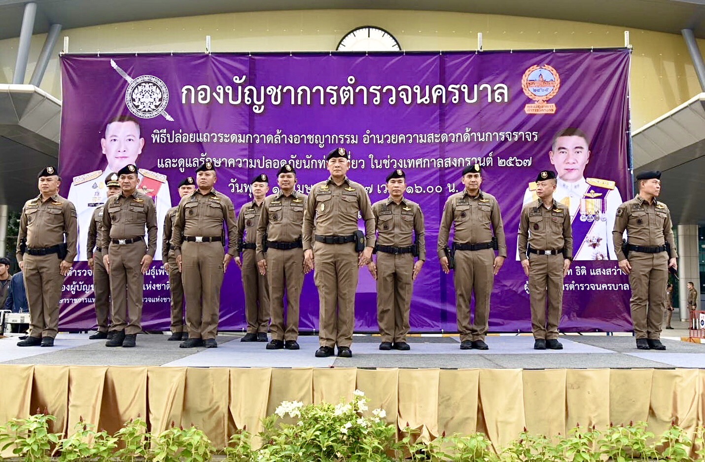 วันที่ 10 เมษายน ที่สถานีกลางกรุงเทพอภิวัฒ พล.ต.อ.กิตติ์รัฐ พันธุ์เพ็ชร์ รองผู้บัญชาการตำรวจแห่งชาติ รักษาราชการแทนผู้บัญชาการตำรวจแห่งชาติ (รอง ผบ.ตร.รรท.ผบ.ตร.) เป็นประธานพิธีปล่อยแถวระดมกวาดล้างอาชญากรรม อำนวยความสะดวกด้านการจราจร และดูแลรักษาความปลอดภัยนักท่องเที่ยว ช่วงเทศกาลสงกรานต์ประจำปี 2567 ของกองบัญชาการตำรวจนครบาล โดยมี พล.ต.ท.ธิติ แสงสว่าง ผู้บัญชาการตำรวจนครบาล , (ผบช.น.) , พล.ต.ต.นพศิลป์ พูลสวัสดิ์ พล.ต.ต.ชรินทร์ โกพัฒน์ตา รอง ผบช.น. , ผบก.น.1-9 , ผบก.จร., ผบก.สปพ. พร้อมผู้แทนจาก กองบัญชาการตำรวจท่องเที่ยว กองบัญชาการตำรวจสอบสวนกลาง ผู้ว่าการรถไฟแห่งประเทศไทย สำนักงานเขตจตุจักร และอาสาสมัคร เข้าร่วมพิธีจำนวน 300 นาย ณ สถานีกลางกรุงเทพอภิวัฒน์ แขวงและเขตจตุจักร กรุงเทพมหานคร