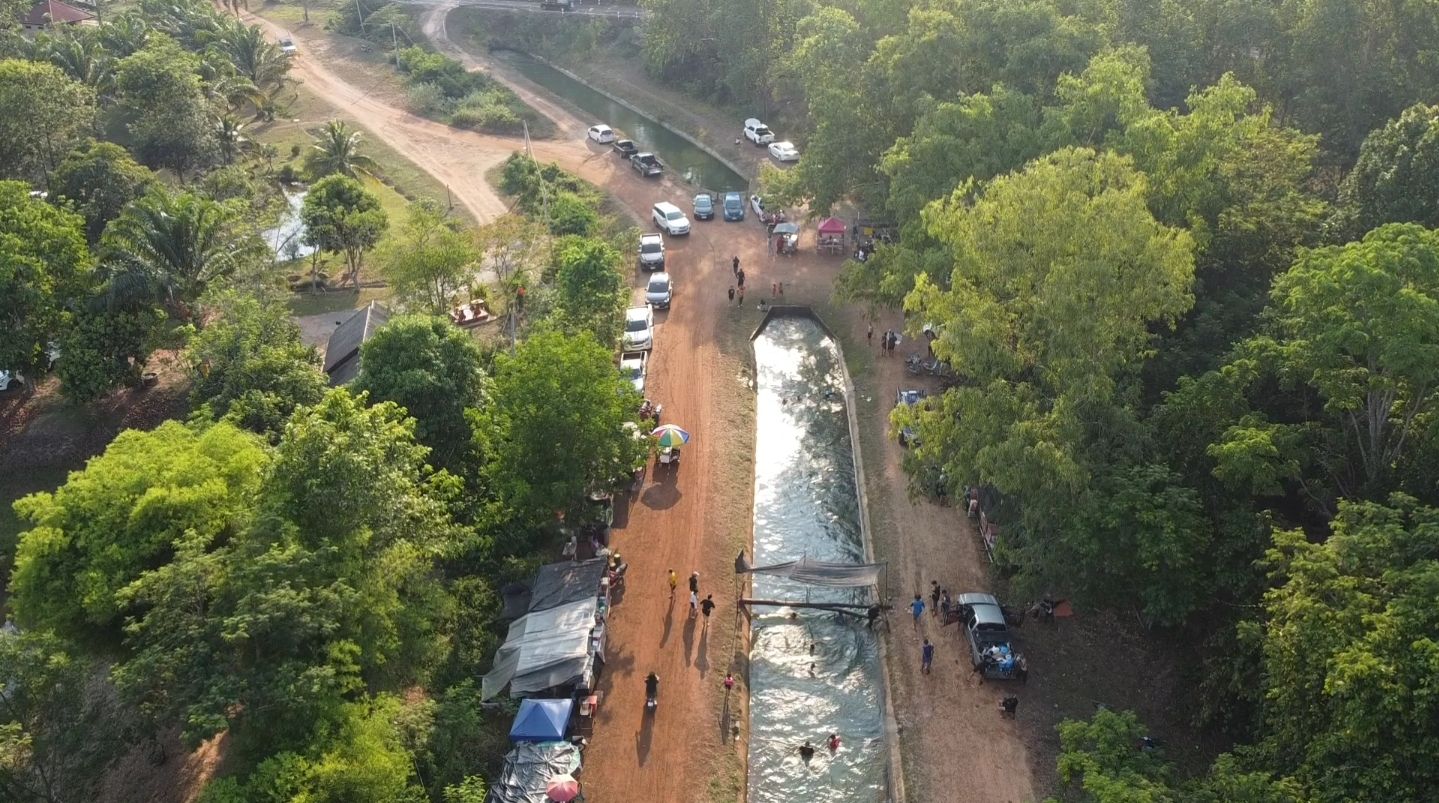 วันที่ 11เมษยน 2567ผู้สื่อข่าวลงพื้นที่ บริเวณคลองส่งน้ำ หน้าเขื่อนเก็บน้ำคลองพระปรง บ้านระเบาะหูกวางหมู่ที่ 6 ต.ช่องกุ่ม อ.วัฒนานคร จ.สระแก้ว จ ได้มีประชาชนและ นักท่องเที่ยว พาครอบครัวเดินทางมาเล่นน้ำในคลองส่งน้ำกันเป็นจำนวนมาก ซึ่งประชาชนที่มาส่วนใหญ่จะเป็นคนในพื้นที่ และพื้นที่ไกล้เคียงโดยพากันขับรถยนต์และ จักรยานยนต์ มาจอดริมคลองส่งน้ำ ก่อนถึงอ่างเก็บน้ำพระปรง ต่างพากันตั้งโต๊ะ เก้าอี้ ปูเสื่อ นั่งรับประทานอาหาร พักผ่อน กับครอบครัว ในช่วงวันหยุดยาวไม่ต้องไปหาที่เที่ยวไกลๆ ไม่ต้องไปแย่งใครเล่น หรือแย่งกันกิน ขณะที่หลายคน ทั้งผู้ใหญ่ และเด็กๆ ก็พากันกระโดดเล่นน้ำกันอย่างสนุกสนาน โดยมีเสียงเพลงที่เปิดจากรถยนต์หลายคัน เปิดเพลงผ่านลำโพง สร้างความครื้นเครงเป็นอย่างมาก ขณะที่ชาวบ้านบางคนใช้โอกาสที่มีนักท่องเที่ยวจำนวนมาก ได้นำอาหาร และเครื่องดื่มมาวางขายสามารถ สร้างรายได้เสริม ส่งผลให้เศรษฐกิจการค้าขายบริเวณนี้คึกคัก ไปด้วย