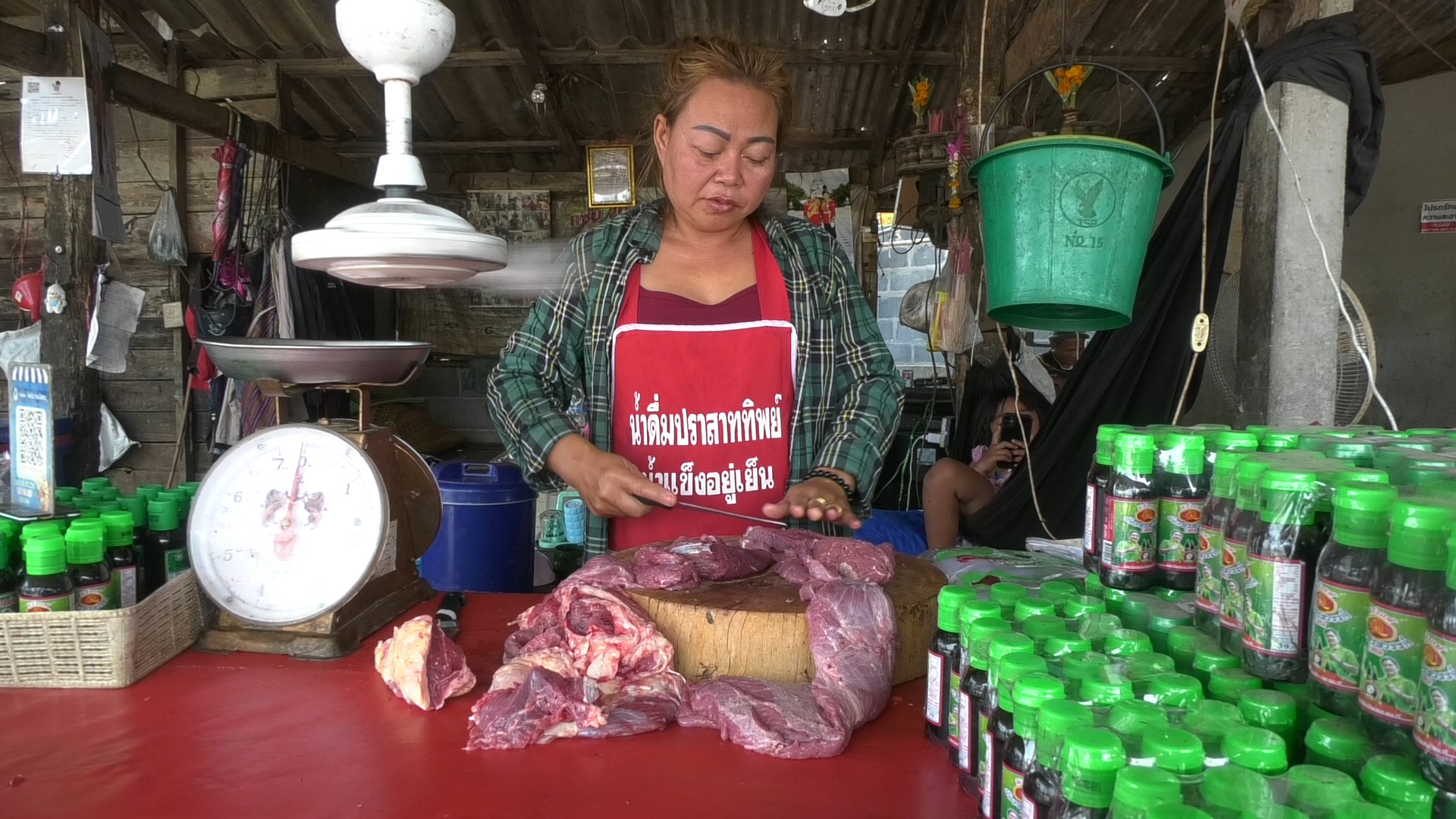 วันที่ 11 เม.ย.2567 ผู้สื่อข่าวรายงาน ใกล้ถึงวันเทศกาลสงกรานต์ หรือปีใหม่ไทย พบว่าบรรดาพ่อค้าแม่ค้า ที่จำหน่ายของฝากต่างๆเริ่มมีการตระเตรียมสินค้าและวัตถุดิบไว้จำหน่ายรองรับประชาชนที่เดินทางกลับบ้านเกิดในช่วงเทศกาลสงกรานต์กันอย่างคึกคัก หวังให้ลูกค้าประชาชนได้แวะซื้อไปเป็นของกินของฝาก ขณะที่ร้านจำหน่ายเนื้อวัวเนื้อควาย ทั้งสดและแดดเดียวหลายร้าน ซึ่งเป็นย่านขายเนื้อวัวเนื้อควายประจำ 3 แยกไฟแดงหินโคน ตรงข้ามโรงเรียนโคกตะเคียนวิทยา ต.โคกตะเคียน อ.กาบเชิง จ.สุรินทร์ และเป็นที่รู้จักดีของประชาชนและนักท่องเที่ยว ที่เดินทางผ่านถนนเส้นนี้ หมายเลข 214 เข้าสู่ตลาดการค้าชายแดนช่องจอม ต.ด่าน อ.กาบเชิง ชายแดนไทย-กัมพูชา