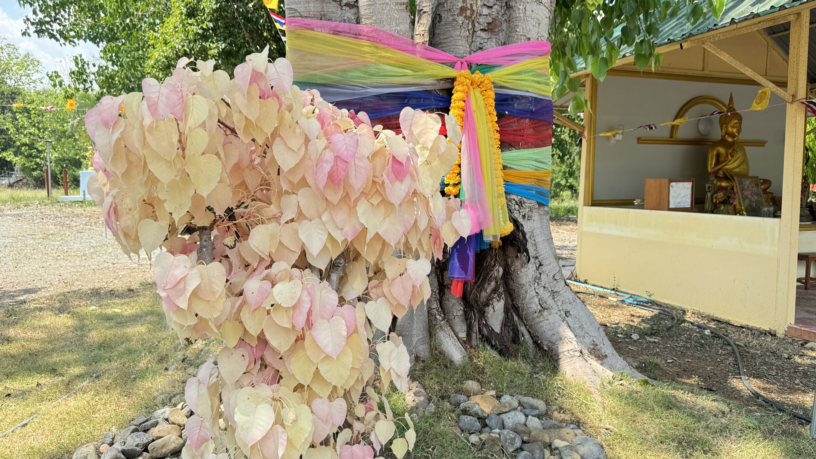 ต้นโพธิ์สีชมพูภายใน วัดใหม่คลองปี อำเภอสอยดาว ขณะนี้ออกใบสะพรั่งเต็มต้น สวยสุดงดงามเป็นอย่างมาก ผิดตาจากก่อนหน้านี้ที่มีใบออกน้อยอาจเกิดจากการเปลี่ยนแปลงของสภาพอากาศ หรือชาวบ้านบางคนมีความเชื่อว่า ต้นโพธิ์มีพลังเต็มที่ ทำให้ต้นอุดมสมบูรณ์ออกใบจนเต็มต้น