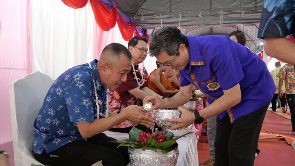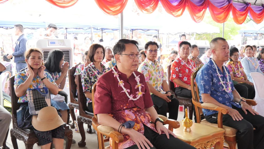 วันนี้ 12 เมษายน 2567 เวลา 16.30 น. ณ ลานอุทยานการเรียนรู้พระพุทธศาสนานานาชาติ หอพระประวัติสมเด็จพระสังฆราชเจ้า กรมหลวงวชิรญาณสังวร สมเด็จพระสังฆราชองค์ที่ 19 วัดเทวสังฆาราม(วัดเหนือ) อำเภอเมืองกาญจนบุรี จังหวัดกาญจนบุรี ร้อยโท ทศพล ไชยโกมินทร์ ผู้ว่าราชการจังหวัดกาญจนบุรี เป็นประธานในพิธีเปิดงาน “เพิ่มสุขสงกรานต์ สืบสานวัฒนธรรม ประจำปี 2567” โดยมี ดร.ธีรชัย ชุติมันต์ ประธานสภาวัฒนธรรมจังหวัดกาญจนบุรี กล่าวรายงานวัตถุประสงค์ของการจัดงานฯ พร้อมด้วย พลตำรวจตรี นครินทร์ สุคนธวิท ผู้บังคับการตำรวจภูธรจังหวัดกาญจนบุรี นางสมมารถ คำถนอม วัฒนธรรมจังหวัดกาญจนบุรี ดร.ปราโมทย์ อุ่นจิตสกุล นายกเทศมนตรีเมืองปากแพรก นายวสันต์ ภูษิตกาญจนา นายกเทศมนตรีเมืองกาญจนบุรี หัวหน้าส่วนราชการ เจ้าหน้าที่ที่เกี่ยวข้อง และประชาชนชาวจังหวัดกาญจนบุรี เข้าร่วมพิธีเปิดงานฯ