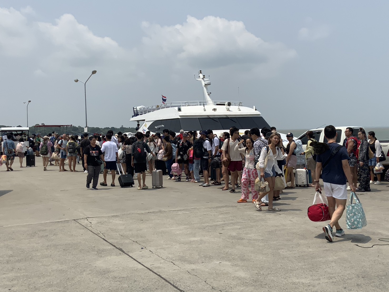 ขณะที่บริเวณท่าเรือเฟอร์รี่อ่าวธรรมชาติ ต.คลองใหญ่ อ.แหลมงอบ จ.ตราดในช่วงเวลา 09.00 น.-11.00 น.รถยนต์ลงเรือเฟอร์รี่เพิ่มขึ้นเรื่อยๆแต่สามารถลงเรือเฟอร์รี่ได้ไม่นานแต่ยังต้องรอเนื่องจากในช่วงเช้าร่องน้ำยังไม่ลึกเพราะน้ำทะเลยังไม่ขึ้นสูงสุด ทำให้เรือเฟอร์รี่ทุกลำไม่สามารถรับได้ทั้งหมด อย่างไรก็ตาม รถยนต์เริ่มเพิ่มขึ้นและรออยู่ในลานได้ทั้งหมดยังไม่ติดอยู่บนถนน จนกระทั่งในช่วงบ่ายเริ่มติดบ้างแต่ระยะทางไม่มาก ทั้งนี้ในช่วงเช้ามีรถยนต์เดินทางลงไปเกาะช้างแล้วกว่า 1,500 คัน คาดว่าทั้งวันจะมีกว่า 2,500 คัน