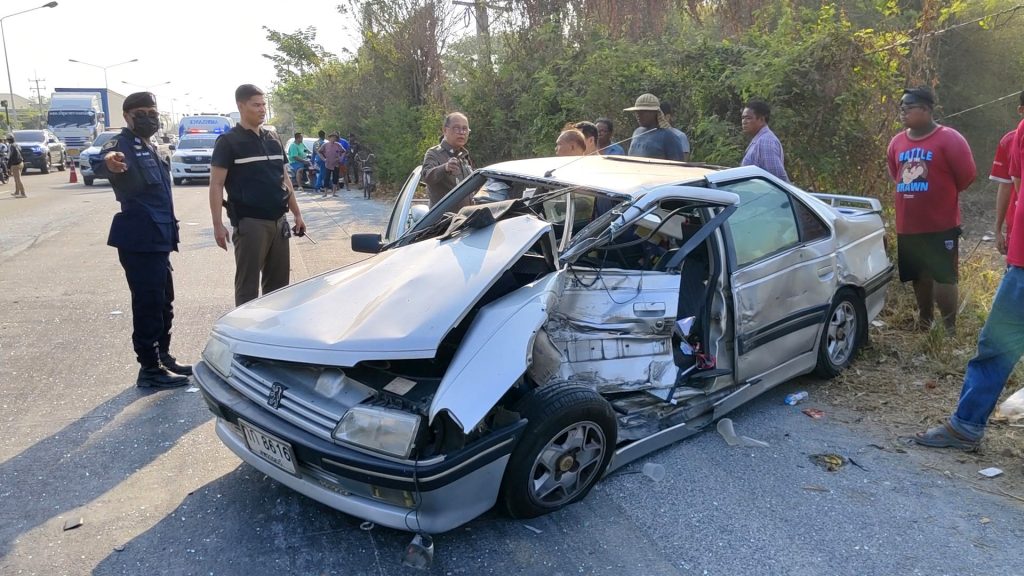 ที่จังหวัดสุพรรณบุรี วันที่ 15 เม.ย.67 พ.ต.ต.กาฬสิน ปากวิเศษ พนักงานสอบสวน สภ.เมืองสุพรรณบุรี รับแจ้งมีอุบัติเหตุรถยนต์ชนกันมีคนได้รับบาดเจ็บทรัพย์สินเสียหายที่ถนนสายมาลัยแมน สวนแตง-อู่ยา หมู่ 4 ตำบลบางกุ้ง อำเภอเมืองสุพรรณบุรี จึงประสานสมาคมร่วมใจสวนแตง เข้าตรวจสอบให้การช่วยเหลือ ที่เกิดเหตุพบรถกระบะยี่ห้อมาสด้าสีดำมีคอกเหล็ก จอดอยู่กลางถนนสภาพหน้ารถด้านขวามีรอยชนพังเสียหายกระจกหน้า และกระจกประตูขวาแตก ละเอียด ภายในรถมีคนได้รับบาดเจ็บเป็นแผลจากการถูกกระจกบาด 2 รายทราบชื่อนายณัฐวัฒน์ อายุ 26 ปี คนขับและ น.ส.ปาริศา แฟนสาวนายณัฐวัฒน์ เจ้าหน้าที่จึงช่วยปฐมพยาบาลเบื้องต้นก่อนนำส่งโรงพยาบาลศูนย์เจ้าพระยายมราช ให้แพทย์ตรวจอาการ