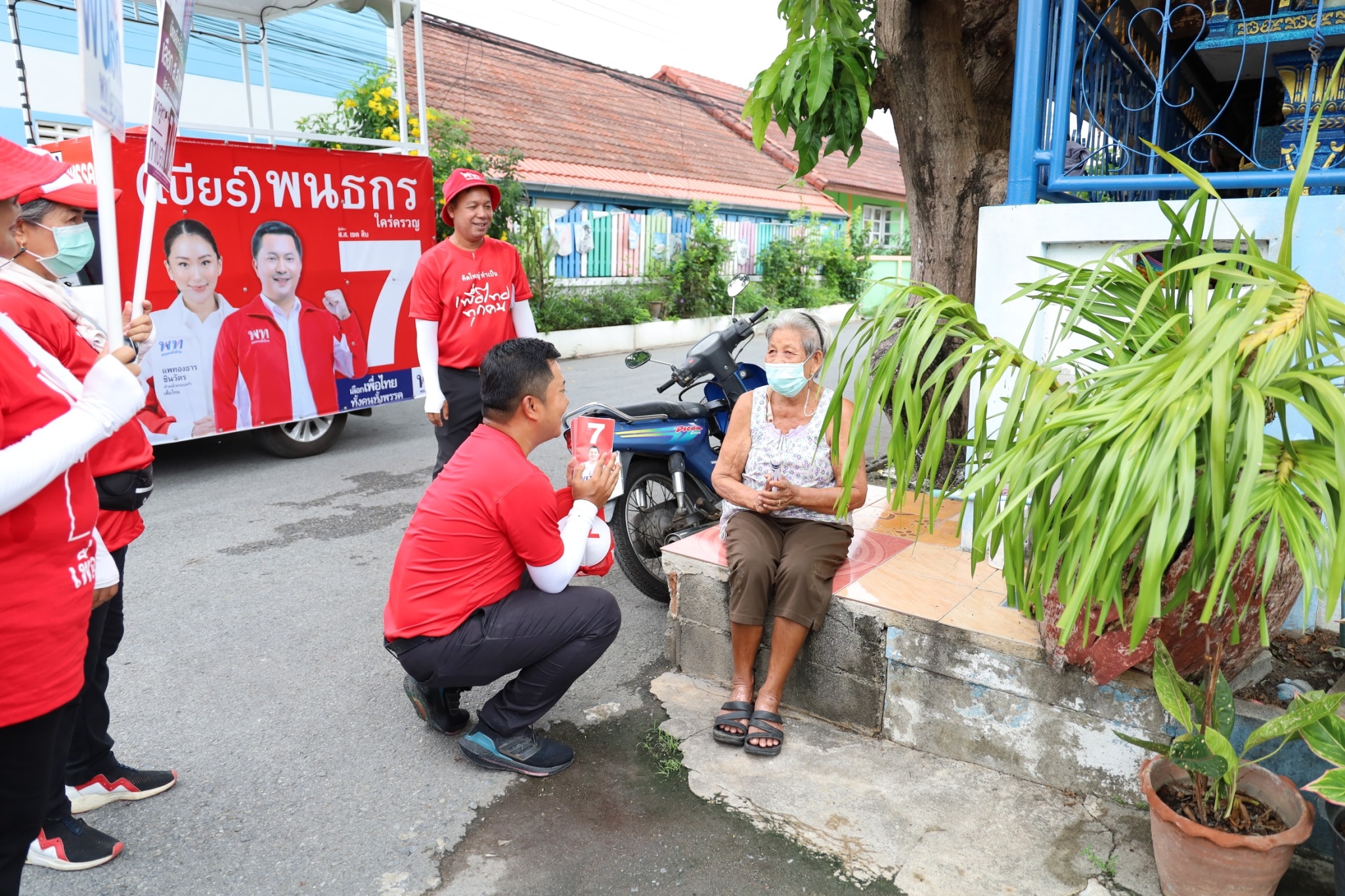 พนธกร ใคร่ครวญ ผู้สมัคร ส.ส. พรรคเพื่อไทย ชลบุรี เขต10 อ.สัตหีบ เบอร์ 7 พร้อมลูกทีมลงพื้นที่หาเสียงที่ตำบลสัตหีบ อำเภอสัตหีบ จังหวัดชลบุรี ตั้งแต่เช้าท่ามกลางอากาศที่ร้อนอบอ้าวแดดจ้าแต่ก็ไม่หวั่น ยังคงเดินหน้าพบปะพี่น้องประชาชน เพื่อแนะนำตัวแนะนำนโยบายพรรคเพื่อไทยอย่างต่อเนื่อง โดยได้เดินแจกแผ่นพับแนะนำตัว อธิบายรายละเอียดเกี่ยวกับการเลือกตั้งในครั้งนี้ เพื่อให้ประชาชนเข้าใจ โดยจะได้บัตร 2 ใบ บัตรสีม่วง กาเบอร์ 7 ส่วนบัตรสีเขียว กาเบอร์ 29