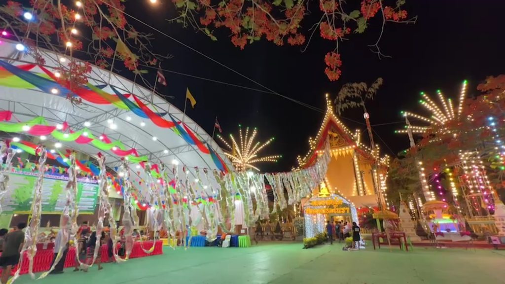 วัดดอนมะโนรา ต.ดอนมะโนรา อ.บางคนที จ.สมุทรสงคราม พระครูสมุทรวัฒนาภรณ์เจ้าอาวาสวัดดอนมะโนรา และคณะสงฆ์ พร้อมด้วยพุทธศาสนิกชนทั้งในและต่างจังหวัดต่างพากันมาร่วมงานประจำปีปิดทองหลวงพ่อโต สรงน้ำพระ ทอดผ้าป่าลอยฟ้ามหากุศล กันเป็นจำนวนมาก โดยพระสงฆ์และพุทธศาสนิกชน โดยไฮไลเป็นการทอดผ้าป่า ลอยฟ้า ด้วยธนบัตรชนิดต่างๆ เย็บติดกับเชือก หน้าอุโบสถ ห้อยเป็นริ้ว ยาว ระย้า โดยพระสงฆ์และสาธุชน ร่วมกันดึงเชือกผ้าป่าลอยฟ้า ทอดผ้าป่าลอยฟ้า ขึ้นไปยังบนยอดหลังคาอุโบสถยาวกว่า 200 เมตร ซึ่งคาดว่าจะยาวที่สุดในประเทศไทย เมื่อโดนลมพัดธนบัตรที่เย็บติดกับริบบิ้นก็จะพลิ้วไหวไปตามแรงลม