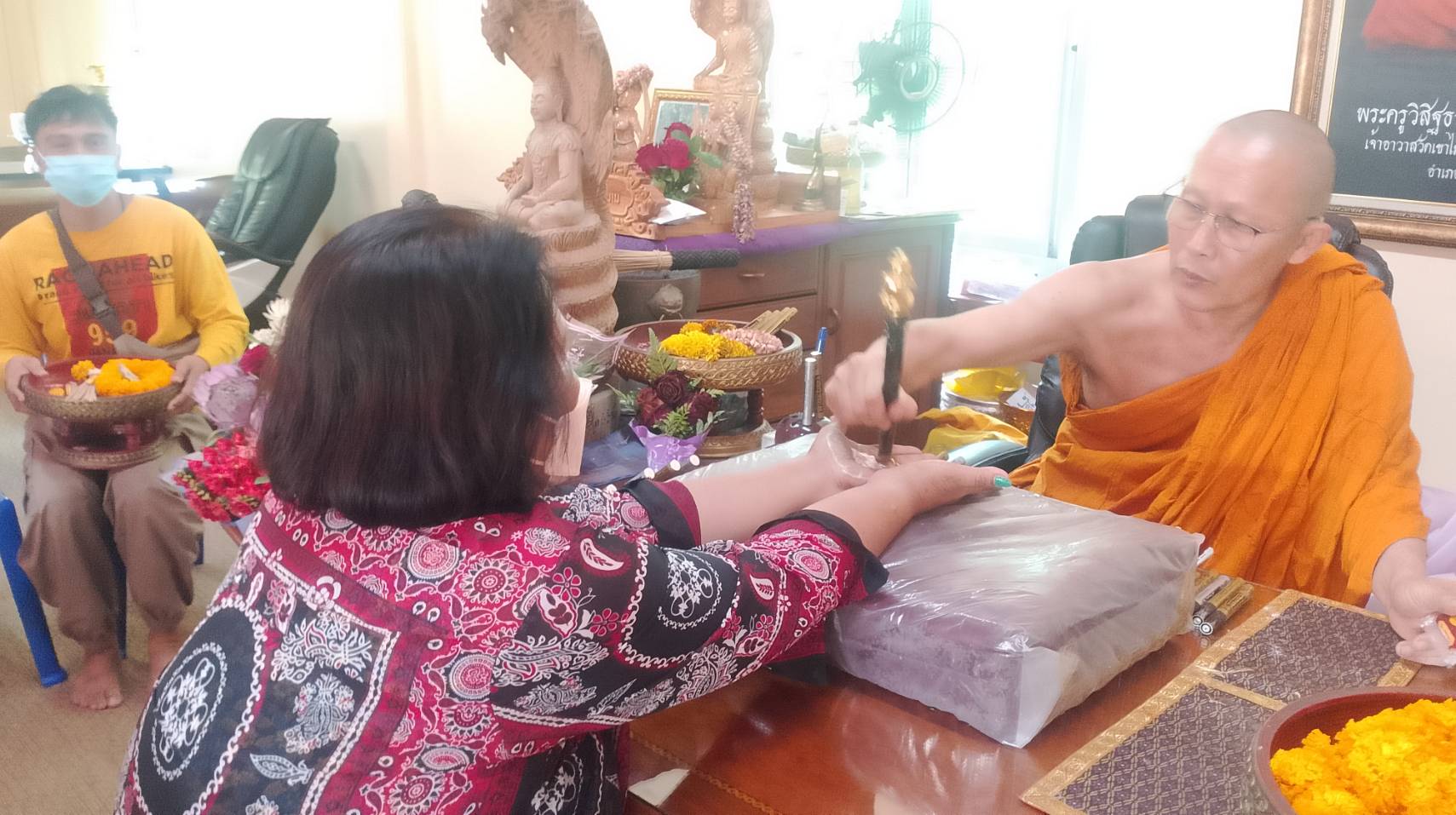 เวลา 09.00 น. เป็นต้นมาของวันที่ 24 เมษายน 2567 ที่วัดเขาไม้แดง ต.บางพระ อ.ศรีราชา จ.ชลบุรี ได้มีประชาชนเดินทางมาทำบุญที่วัด และถือโอกาสมาจองคิวเจิมมือ”นะพระแม่โพสพมีกินไม่รู้สิ้น”และเจิมหน้าผาก”พระพุทธพักตร์หน้าทอง”กันอย่างไม่ขาดสาย ส่วนมากผู้ที่เดินทางมาจะเป็นพ่อค้า-แม่ค้า-นักธุรกิจ-หนุ่มสาวโรงงาน จากทั่วประเทศไทยและผู้ที่ศรัทธาในพระครูวิสิฐ์ธรรมโสภณ หรือ หลวงพ่อสง่า เจ้าอาวาสวัดเขาไม้แดง และ พระครูปลัดนพภัณฑ์หรือพระปลัดบิว ผู้ช่วยเจ้าอาวาสวัดเขาไม้แดง ศิษย์เอกหลวงพ่อสง่า ผู้รับครอบครูและครอบมือในการทำการเจิมยันต์พระพุทธพักตร์หน้าทอง หนึ่งเดียวในไทย