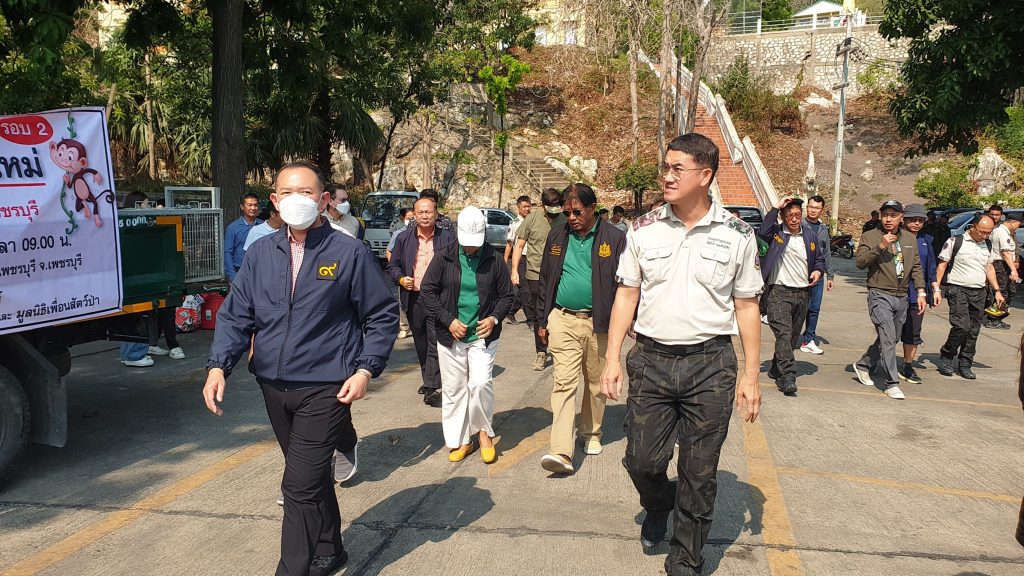 เมื่อเวลา10.00น.วันที่28เมษายน2567 ณ บริเวณทางขึ้นเขาวัง (พระนครคีรี) อ.เมือง จ.เพชรบุรี นายอรรถพล เจริญชันษา อธิบดีกรมอุทยานแห่งชาติ สัตว์ป่า และพันธุ์พืช ดร. ยุทธพล อังกินันทน์ ที่ปรึกษารัฐมนตรีว่าการกระทรวง การพัฒนาสังคมและความมั่นคงของมนุษย์ Mr. Edwin Wiek เลขาธิการมูลนิธิเพื่อนสัตว์ป่า นายนายสมเจตน์ จันทนา ผู้อำนวยการสำนักบริหารพื้นที่อนุรักษ์ที่ 3 สาขาเพชรบุรี นายสัตวแพทย์ ภัทรพล มณีอ่อน หรือ “หมอล็อต” พร้อมด้วย เลขาธิการ สส.จ.ลพบุรีมาดูงาน ผู้อำนวยการส่วน หัวหน้าหน่วยงานภาคสนาม และเจ้าหน้าที่กรมอุทยาน ลงพื้นที่นำอุปกรณ์จับลิงเสน และนำไปติดตั่งตั้งกรงดักลิง จำนวน12จุด คือ โรงเรียนพรหมานุสรณ์ วัดเขาวัง ศาลเจ้าข้างร้านของฝากขนมหม้อแกง วัดถ้ำแก้ว วัดพระนอน วัดช่อย เขาวังเมืองใหม่ ร้านหมูสมนึก เคเบิลคาร์ ทางขึ้นเขาวัง โรงแรมเขาวัง วัดสระบัว เป็นต้น โดยก่อนการย้ายได้มีการทำหมั่นลิง ก่อนนำลิงไปสู่ที่พักพิงใหม่ครั้งที่2 จำนวน200ตัว เขาวัง-สถานีเพาะเลี้ยงสัตว์ป่าห้วยทราย อ.ชะอำ จ.เพชรบุรี ภายใต้โครงการแก้ไขปัญหาลิงล้นเมืองเพชรบุรี