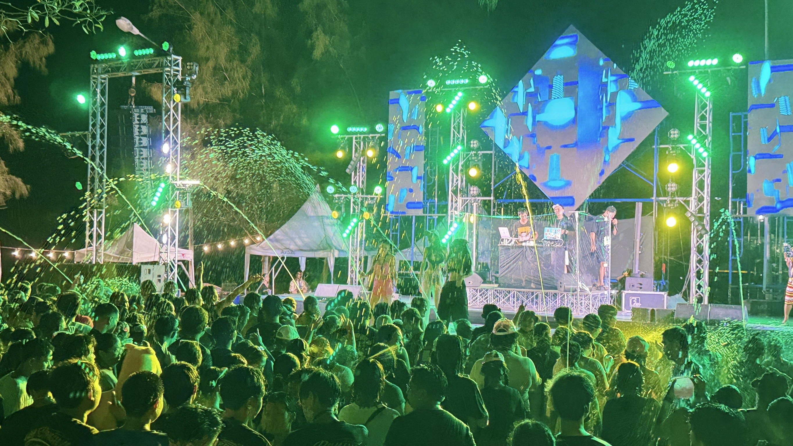 เมื่อช่วงค่ำที่ผ่านมา ประชาชนจำนวนมากหลั่งไหลเดินทางไปเล่นน้ำวันไหลสงกรานต์ซึ่งเป็นการจัดเป็นที่สุดท้ายของจังหวัดจันทบุรี เมื่อเริ่มเข้าเขตชายหาดคุ้งวิมาน อำเภอนายายอาม ก็จะสังเกตได้ว่ารถเริ่มจะติดกันเป็นแถวยาว เนื่องจากมีประชาชน นำรถกระบะบรรทุกใส่ถังน้ำ เดินทางมาสาดน้ำใส่กัน ตลอดสองฝั่งถนนตั้งแต่ชายหาดไปจนถึงเนินนางพญา สร้างความสนุกสนานและรอยยิ้มให้กับนักท่องเที่ยวเป็นอย่างมาก ส่วนด้านในบริเวณลานหินโคร่ง ทีมงาน “เจ๊ยุ้ย ลูกมังกร” ได้จัดให้มีเวที ปาร์ตี้โฟม ฟรี และมีบรรดาดีเจชื่อดังที่เดินทางมาร่วมสร้างความสุขสนานด้วยการเปิดเพลงอีกหลายท่าน