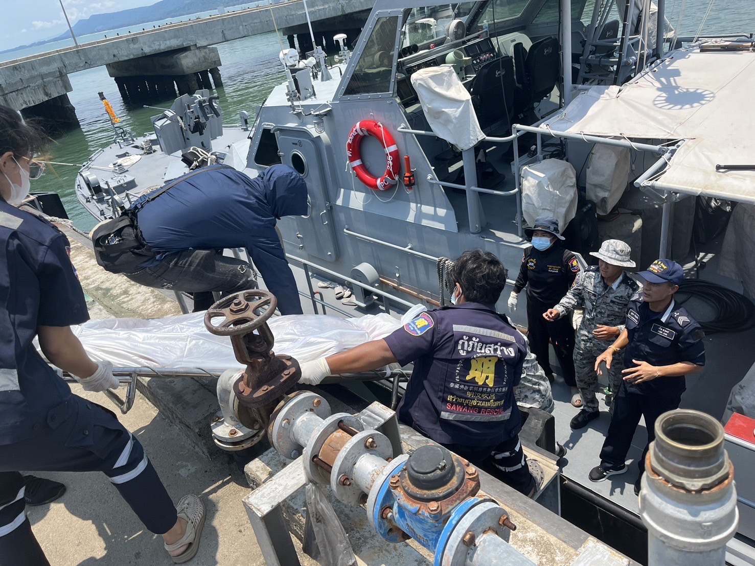 เมื่อวันที่ 30 เม.ย.67 ทัพเรือภาคที่ 1 โดย หมู่เรือลาดตระเวนชายแดน สั่งการให้ เรือ ต.235 ออกเรือลาดตระเวนในทะเล ระหว่างลาดตระเวน พบศพชายนิรนามลอยกลางทะเล บริเวณพื้นที่ทางทะเลตำบลไม้รูด ระยะห่างจากฝั่ง ประมาณ 4 ไมล์ทะเล เรือ ต.235 จึงได้นำร่างผู้เสียชีวิตกลับเข้าฝั่ง และเทียบท่าที่ท่าเรือเทียบเรืออเนกประสงค์คลองใหญ่ โดยประสานเจ้าหน้าที่กู้ภัยสว่างบุญช่วยเหลือฯ และเจ้าหน้าที่ตำรวจ สภ.คลองใหญ่ นำส่งโรงพยาบาลคลองใหญ่ เพื่อรอดำเนินการชันสูตรเพิ่มเติมต่อไป