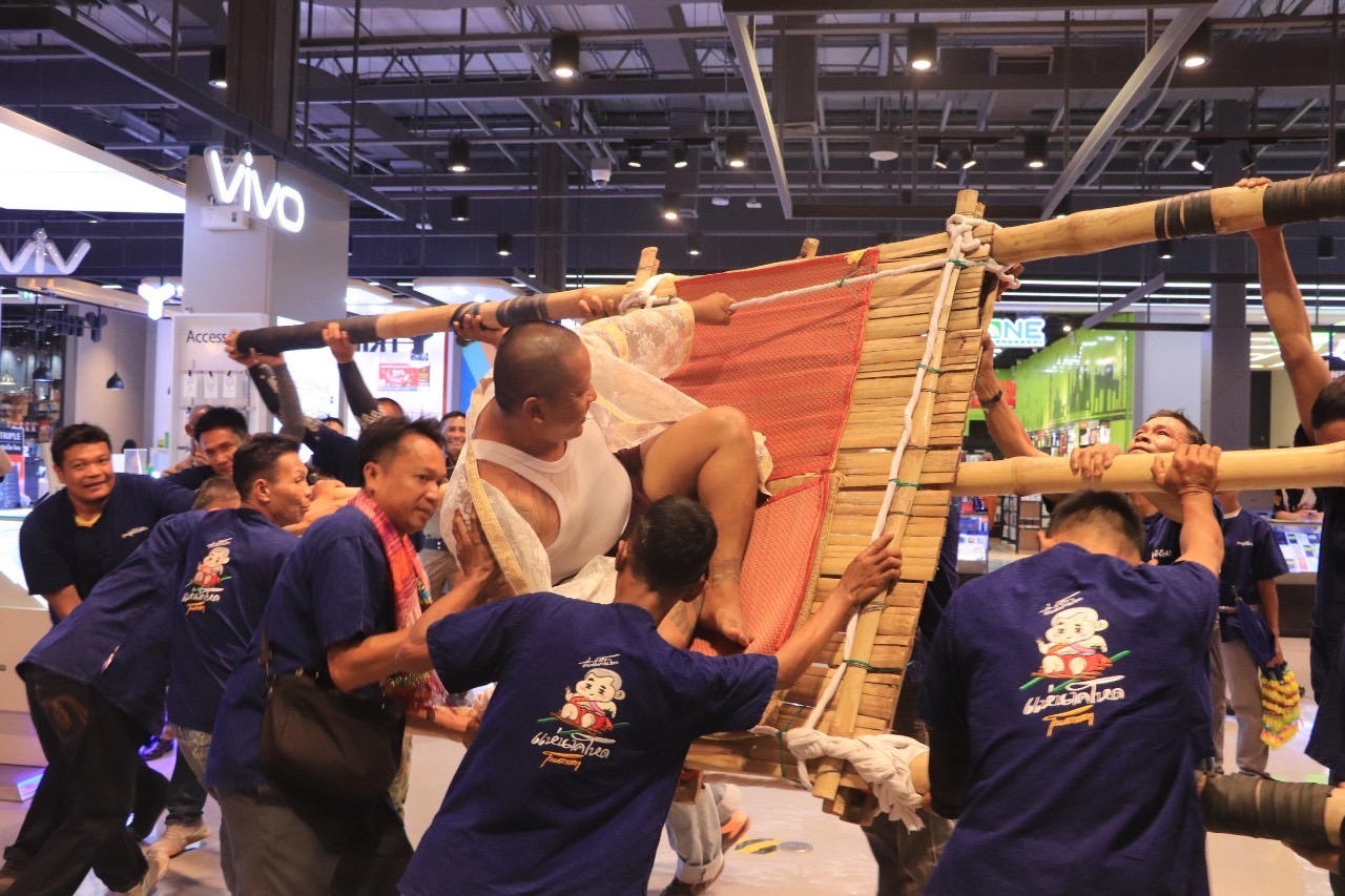 ซึ่งได้จัดงานแถลงเตรียมการจัดงานแห่นาคโหดหนึ่งเดียวในโลก ประจำปี2567 โดยการแถลงข่าวในปีนี้ได้นำขบวนแห่นาคโหด แบบของจริง คนจริง ทึมงานจริง มาโชว์อ็อฟความโหดกลางห้าง เพื่อให้ประชาชนที่เดินทางมาเที่ยวศูนย์การค้าโรบินสันฯ ได้ชมอย่างตื่นตาตื่นใจไปทั่วห้างในปีนี้ เพื่อตั้งใจให้มีการกระตุ้นนักท่องเที่ยวอยากเข้าไปชมของจริงในวันงานดังกล่าวที่จะจัดขึ้น