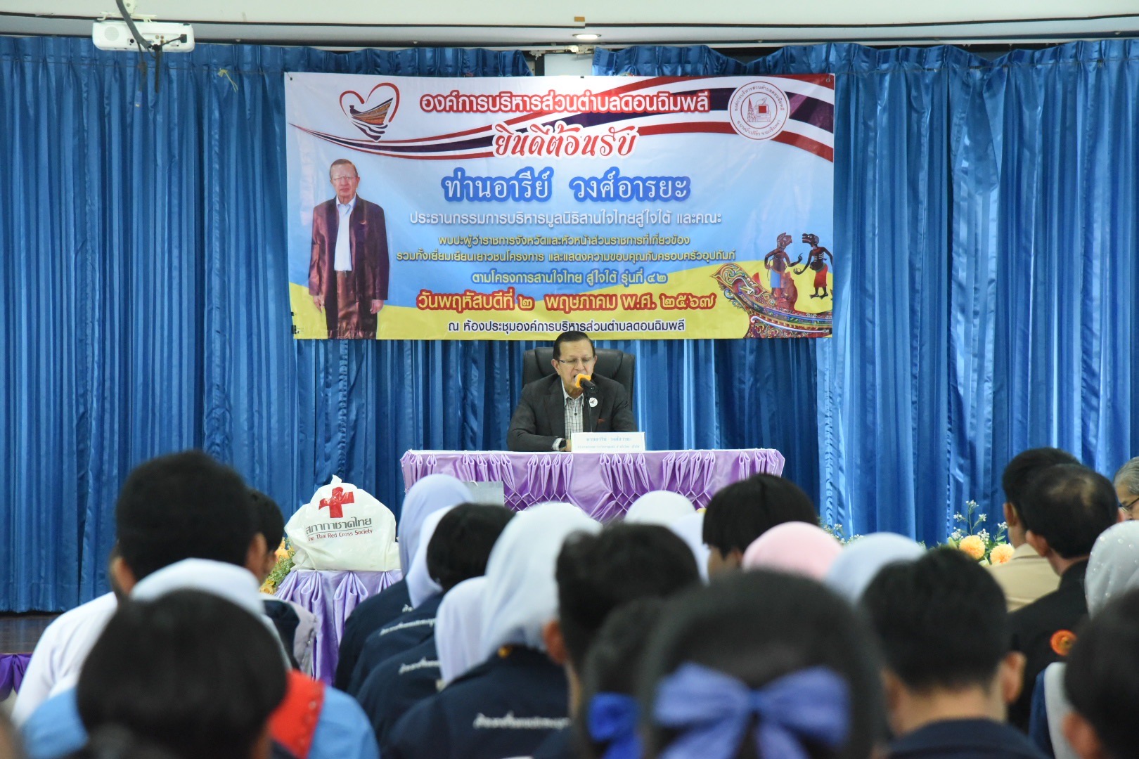 วันที่ 2 พฤษภาคม 2567 ที่ องค์การบริหารส่วนตำบลดอนฉิมพลี อำเภอบางน้ำเปรี้ยว จังหวัดฉะเชิงเทรา นายชลธี ยังตรง ผู้ว่าราชการจังหวัดฉะเชิงเทรา พร้อมด้วยนางพัทธานันท์ ยังตรง นายกเหล่ากชาดจังหวัดฉะเชิงเทรา ประธานแม่บ้านมหาดไทยจังหวัดฉะเชิงเทรา นายธีระพล สุ่มมาตย์ นายอำเภอบางน้ำเปรี้ยว และผู้แทนส่วนราชการ ครอบครัวอุปถัมภ์ เยาวชนที่เข้าร่วมโครงการสานใจไทยสู่ใจใต้ รุ่นที่ 42 ร่วมให้การต้อนรับ นายอารีย์ วงศ์อารยะ ประธานเยี่ยมโครงการ “สานใจไทย สู่ใจใต้” ในโอกาสเยี่ยมและให้กำลังใจ เยาวชนและครอบครัวอุปถัมภ์ที่เข้าร่วมโครงการฯ