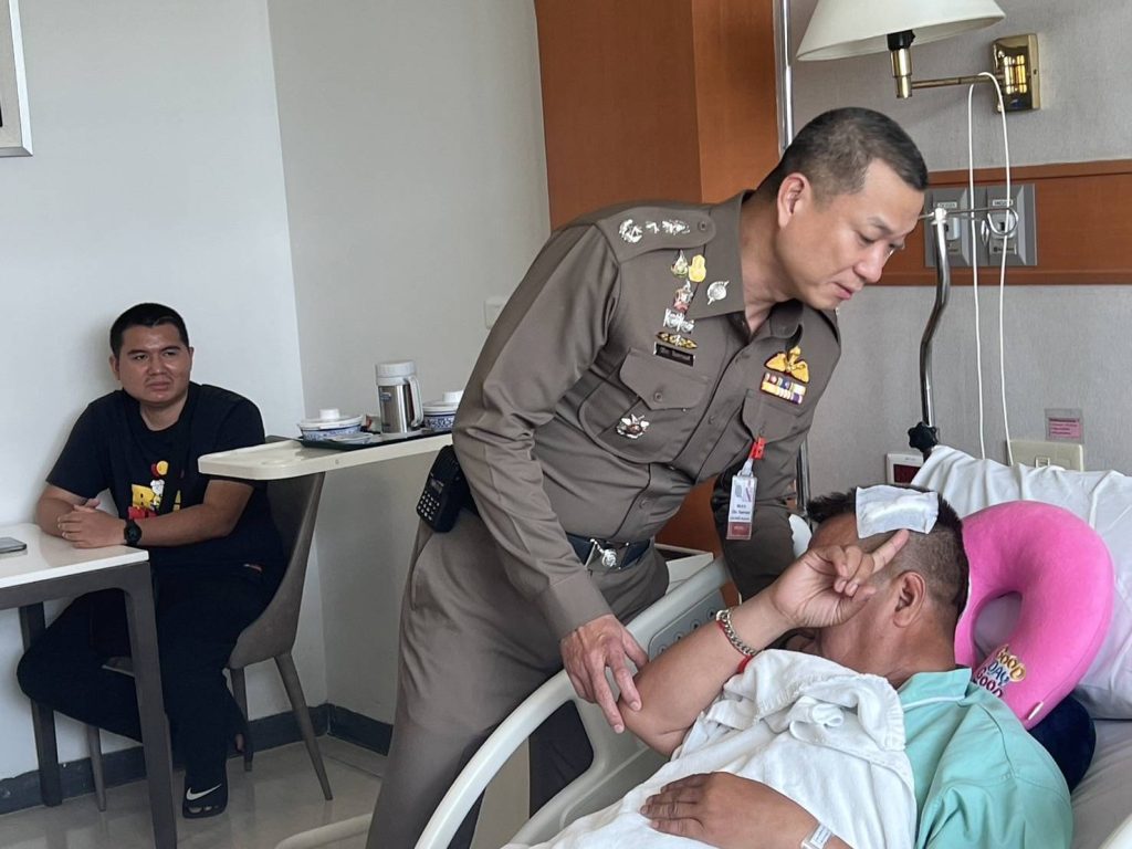 วันนี้ 2 พฤษภาคม 2567 เวลา13.30น. พล.ต.อ.กิตติ์รัฐ พันธุ์เพ็ชร์ รองผู้บัญชาการตำรวจแห่งชาติ รักษาราชการแทนผู้บัญชาการตำรวจแห่งชาติ (รอง ผบ.ตร.รรท.ผบ.ตร.) มอบหมายให้ พล.ต.ท.นิธิธร จินตกานนท์ ผบช.ประจำ สง.ผบ.ตร./หน.คณะทำงานด้านเสริมสร้างภาพลักษณ์ตำรวจจราจร สำนักงานตำรวจแห่งชาติ เข้าเยี่ยมพร้อมมอบกระเช้าเพื่อเป็นขวัญกำลังใจแก่ ร.ต.ท.พงศ์รัตน์ ประวะโข รอง สว.(จร.) งานศูนย์ควบคุมจราจรด่วน 1 กก.2 บก.จร. ณ โรงพยาบาลตำรวจ หลังเข้าระงับเหตุชายคลั่งอาละวาดทุบรถประชาชน บริเวณหน้าปั๊มแก๊สตรงข้ามสถานีรถไฟหัวลำโพง ริมคลองผดุงกรุงเกษม กรุงเทพมหานคร จนถูกทำร้ายได้รับบาดเจ็บด้วยอาวุธมีด เมื่อวานนี้
