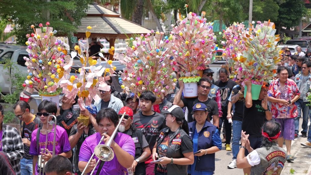 รถช๊อปเปอร์ ทั้งฮาเล่เดวิสสัน และพันธมิตร รวมตัวกันกว่า 150 คัน ขับจากถนนสมุทรสงคราม-บางแพร ตามท้องถนนเป็นแถวยาว เสียงท่อดังกระหึ่ม สร้างความเร้าใจ ไปทอดผ้าป่า ภายใต้ชื่อ ชาว 2 ล้อรวมใจทอดผ้าป่าสามัคคี ที่วัดไทร ตำบลกระดังงา อำเภอบางคนที จังหวัดสมุทรสงคราม โดยมี พระสมุห์ธนพงษ์ กิตติวังโส เจ้าอาวาสวัดไทร พร้อมศิษยานุศิษย์ คอยต้องรับและอำนวยความสะดวก โดยคณะช๊อปเปอร์ ได้แห่พุ่มผ้าป่ารอบอุโบสถ 3 รอบ เข้าสู่ศาลาเอนกประสงค์ ถวายแด่เจ้าอาวาสวัดไทร เพื่อนำปัจจัยที่ได้จากทอดผ้าป่าครั้งนี่จะนำไปเป็นทุนในการบูรณะปฏิสังขรณ์ถาวรวัตถุในวัดที่ชำรุดทรุดโทรม ได้เงินทำบุญ รวม 505,105 บาท