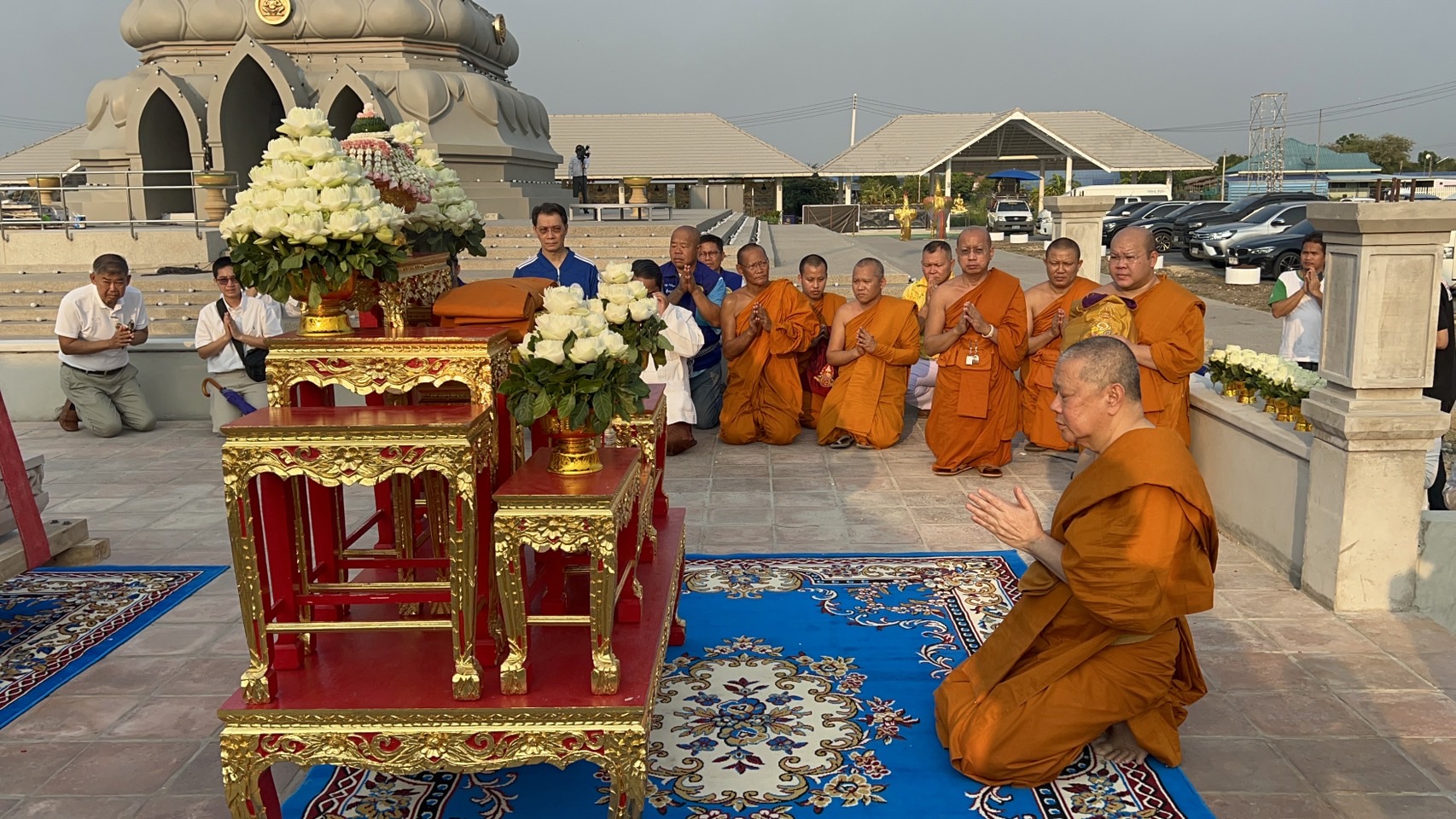 เมื่อเวลา 18.30 น.วันที่ 5 พ.ค.2567 สมเด็จพระมหารัชมงคลมุนี (สมเด็จธงชัย) ผู้ช่วยเจ้าอาวาสวัดไตรมิตรวิทยารามวรวิหาร เป็นประธานจุดเทียนชัยในพิธีอัญเชิญท่านวัชรอาสน์ ที่ได้อัญเชิญมาจากเมืองพุทธคยาประเทศอินเดียโดยนำมาประดิษฐาน ณ ลานธรรมหลวงปู่ทวด ที่วัดแหลมแค ตำบลหน้าประดู่ อำเภอพานทอง จังหวัดชลบุรี โดยมี พระครูปลัดสุวัฒนเถร คุณ (พระอาจารย์แก้ว) เจ้าอาวาสวัดตะโก อำเภอภาชี จังหวัดพระนครศรีอยุธยา