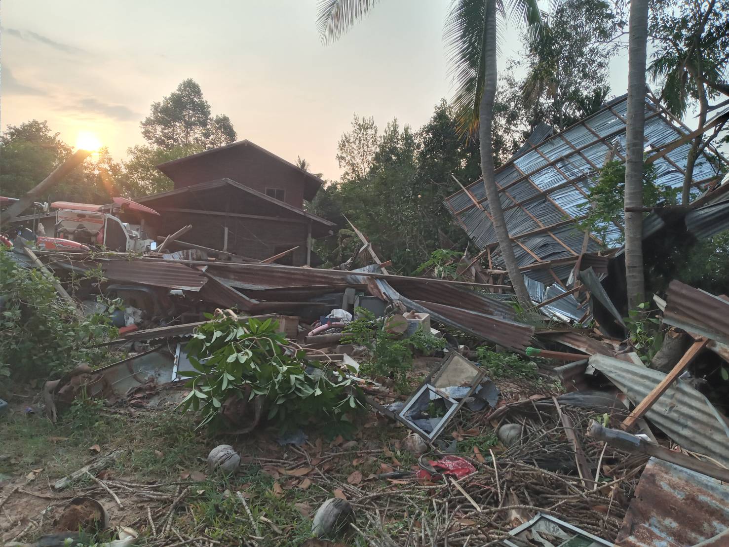 เมื่อวันที่ 6 พ.ค.2567 ผู้สื่อข่าวรายงานว่า ที่ ต.ห้วยตามอญ อ.ภูสิงห์ จ.ศรีสะเกษ จ่าเอกสมควร สิงห์คำ นายอำเภอภูสิงห์ ได้สั่งการให้ นายสรศิริ จันดีบุตร ปลัดอำเภอฝ่ายความมั่นคง อ.ภูสิงห์ นำเจ้าหน้าที่ อส.อ.ภูสิงห์ ร่วมกับนายก อบต.ห้วยตามอญ กำนัน ต.ห้วยตามอญ ผู้ใหญ่ และจิตอาสา ได้ร่วมกันเข้าไปสำรวจความเสียหายและให้ความช่วยเหลือชาวบ้านที่บ้านเรือนถูกพายุฤดูร้อนพัดถล่มอย่างรุนแรงนานประมาณ 30 นาที พายุที่พัดถล่มอย่างรุนแรงได้ส่งผลให้ต้นไม้ขนาดใหญ่ฉีกขาดโค่นล้มลงมาทับบ้านเรือนของชาวบ้านได้รับความเสียหาย บ้านเรือนของชาวบ้านโดนลมพายุพัดถล่มลงมากองอยู่กับพื้น หลังคาบ้านเรือนของชาวบ้านที่เป็นสังกะสีโดนลมพายุพัดปลิวไปไกลหลายสิบเมตร ซี่ง นายสรศิริ จันดีบุตร ได้นำคณะเจ้าหน้าที่เข้าไปเร่งทำการช่วยเหลือชาวบ้านโดยการตัดต้นไม้ที่โค่นล้มทับบ้านเรือน ช่วยเหลือเก็บข้าวของทรัพย์สินต่าง ๆ พร้อมทั้งเข้าไปทำการซ่อมแซมหลังคาบ้านเรือนของชาวบ้านให้สามารถใช้การได้ตามปกติอย่างเร่งด่วน