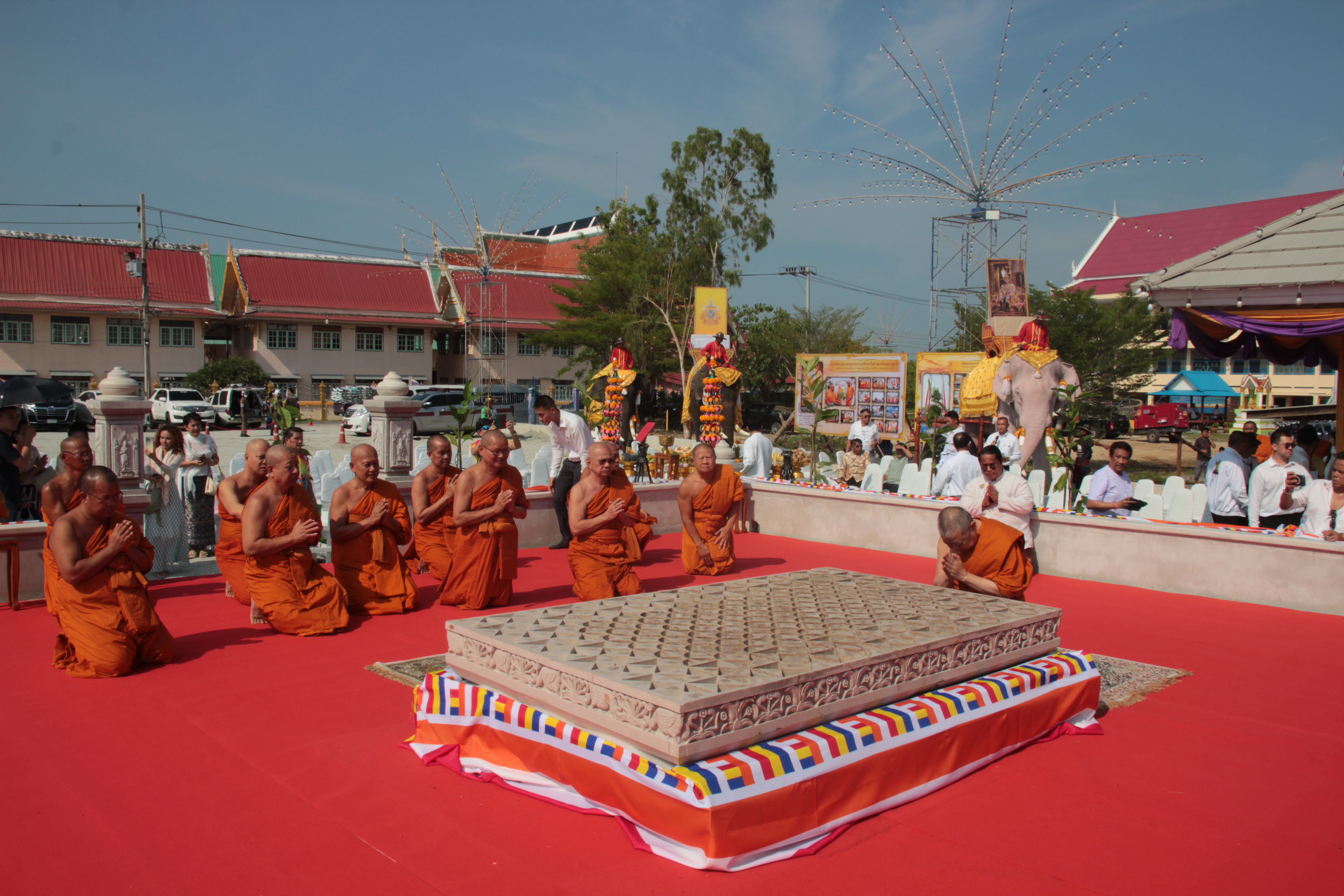 เมื่อเวลา08.30น.(10พ.ค.2567) ที่ลานธรรมหลวงพ่อทวด วัดแหลมแค ต.หน้าประดู่ อ.พานทอง จ.ชลบุรี สมเด็จพระมหารัชมงคลมุนี (ธงชัย ธมฺมธโช) กรรมการมหาเถรสมาคม เจ้าคณะใหญ่หนกลาง ผู้ช่วยเจ้าอาวาสวัดไตรมิตรวิทยารามวรวิหาร จัดพิธีสมโภช‘พระแท่นวัชรอาสน์’ จำลอง ในวันที่10-12 พ.ค.2567 ถวายเป็นพระราชกุศล 72 พรรษา เนื่องในโอกาสมหามงคลเฉลิมพระชนมพรรษาพระบาทสมเด็จพระเจ้าอยู่หัว ทรงเจริญพระชนมพรรษา 6 รอบ หรือ 72 พรรษา ตลอด 3 วันของงานสมโภชพระสมโภชพระแท่นวัชรอาสน์ จำลอง ในช่วงเช้า วันนี้ มีดร.ฉวีวรรณ คำพานายกสมาคมส่งเสริมการเลี้ยงไก่ แห่งประเทศไทย ในพระบรมราชูปถัมภ์ และประธานบริหารกลุ่มฉวีวรรณกรุ๊ป เป็นประธานฝ่ายฆราวาส โดยมีพิธีบวงสรวง และประกอบพิธีปะกำช้างตามประเพณีโบราณ โดยขบวนช้างจากจังหวัดพระนครศรีอยุธยาจำนวน3เชือกและใช้น้ำนมรดต้นพระศรีมหาโพธิ์ตามประเพณีโบราณ และยังประกอบพิธีบวงสรวงหลวงพ่อทวด หลังจากนั้นนิมนต์พระสงฆ์ทรงสมณศักดิ์จำนวน 10 รูปเจริญพระพุทธมนต์ และถวายภัตราหารเพล ซึ่งได้มีประชาชนในพื้นที่จังหวัดชลบุรีจำนวนมากเข้าร่วมในพิธีครั้งนี้ซึ่งพธีสมโภชน์ยังจะมีขึ้นอีก2วันในวันที่11-12พ.ค.นี้