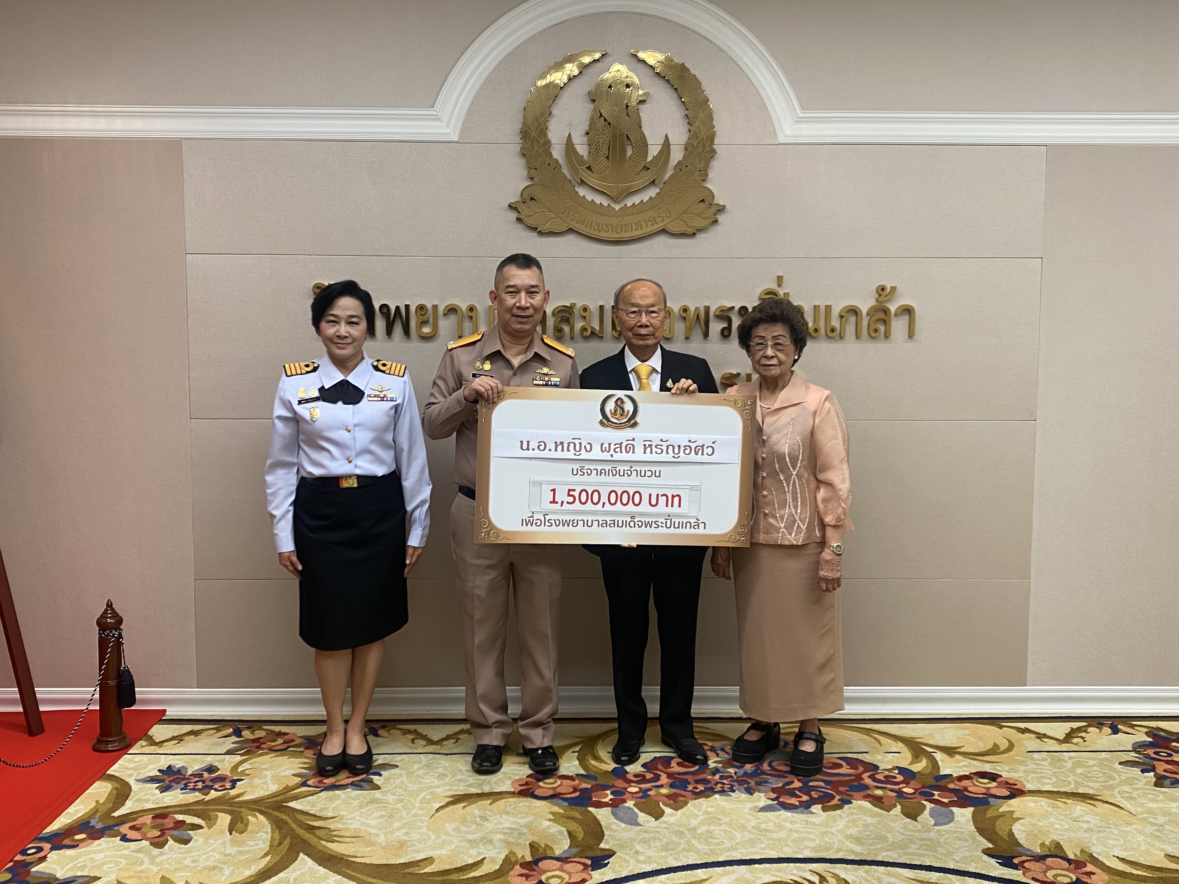 น.อ.หญิง ผุสดี หิรัญอัศว์ รองผู้อำนวยการรพ.สมเด็จพระปิ่นเกล้า กรมแพทย์ทหารเรือ และ ผู้อำนวยการศูนย์สุขภาพและเวลเนสเซ็นเตอร์ ร่วมบริจาคเงิน 1,500,000 บาท (หนึ่งล้านห้าแสนบาท)พร้อมด้วยบิดามารดา คุณชาญวิทย์ -วิไล หิรัญอัศว์