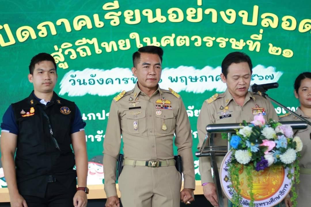 ในพิธีเปิดโครงการ “เปิดภาคเรียนอย่างปลอดภัย สู่วิถีเด็กไทยในศตวรรษที่ 21“ เพื่อเป็นการเฝ้าระวังป้องกันและการคุ้มครองดูแลช่วยเหลือความประพฤตินักเรียนและนักศึกษา ในช่วงเปิดภาคการศึกษา ณ โดมอเนกประสงค์วิทยาลัยเทคนิคฉะเชิงเทรา