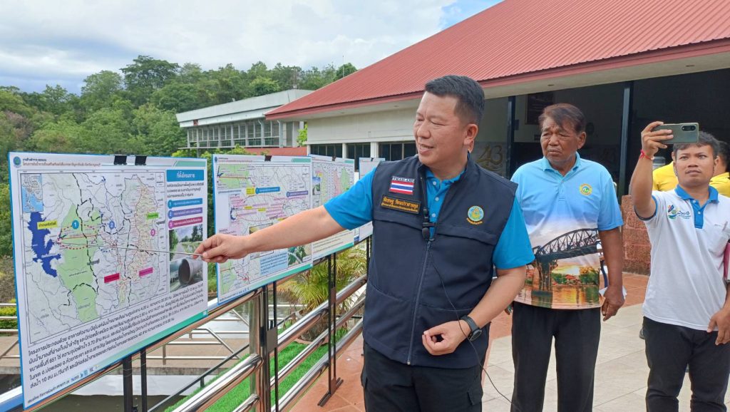นายพิเชษฐ รัตนปราสาทกุล ผู้อำนวยการสำนักออกแบบวิศวกรรมและสถาปัตยกรรม กล่าวว่า กรมชลประทานได้เริ่มโครงการผันน้ำจากเขื่อนศรีนครินทร์ เพื่อบรรเทาปัญหาภัยแล้ง จังหวัดกาญจนบุรี มีลักษณะโครงการเป็นการก่อสร้างอุโมงค์ผันน้ำและระบบส่งน้ำ เพื่อผันน้ำจาก อ่างเก็บน้ำเขื่อนศรีนครินทร์ไปช่วยเหลือพื้นที่ประสบปัญหาภัยแล้งของอำเภอบ่อพลอย อำเภอห้วยกระเจา และอำเภอเลาขวัญ จังหวัดกาญจนบุรี โดยองค์ประกอบของโครงการนั้น ตั้งอยู่ในเขตอำเภอศรีสวัสดิ์ อำเภอบ่อพลอย อำเภอห้วยกระเจา และอำเภอเลาขวัญ จังหวัดกาญจนบุรี ระยะเวลาดำเนินงานสำรวจและออกแบบรวม 720 วัน เริ่มตั้งแต่ 16 กันยายน 2566 สิ้นสุด 4 กันยายน 2568 เนื่องจากพื้นที่ในอำเภอดังกล่าวฯ เป็นพื้นที่ที่ประสบปัญหาภัยแล้งซ้ำซากของจังหวัดกาญจนบุรี ราษฎรประสบกับปัญหาภาวะขาดแคลนน้ำมาอย่างยาวนาน จัดอยู่ในพื้นที่เสี่ยงภัยแล้งสูง จนถูกขนาน นามว่า “อีสานแห่งกาญจนบุรี”