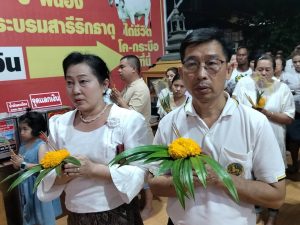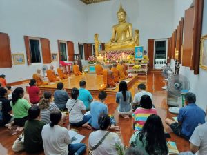 วันที่ 22 พ.ค.67 เวลา 20.00 น. ที่วัดสมานรัตนาราม อ.เมืองฉะเชิงเทรา เจ้าคุณพระประชาธรรมนาถ เจ้าคณะจังหวัดฉะเชิงเทรา (ธ) เจ้าอาวาสวัดสมารัตนาราม นำพุทธศาสนิกชนชาวแปดริ้ว นักท่องเที่ยว ร่วมเวียนเทียนรอบพระอุโบสถ 3 รอบ