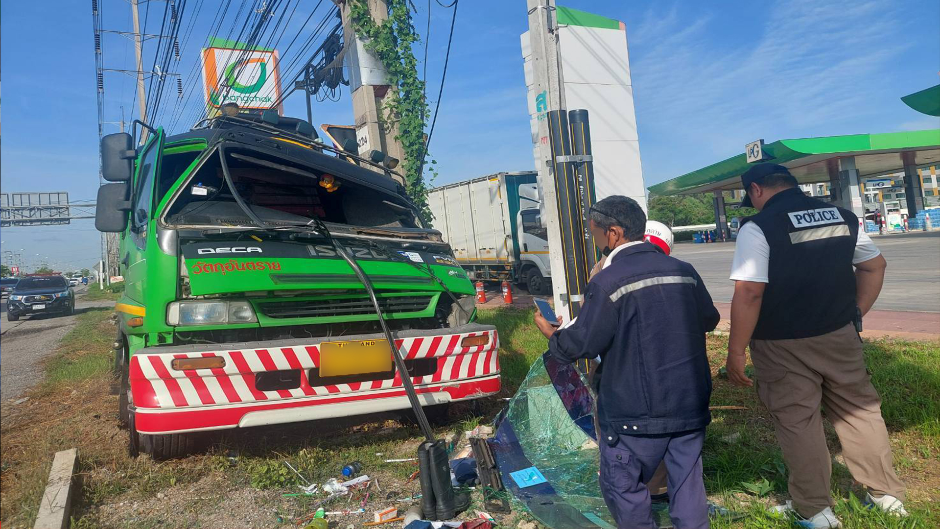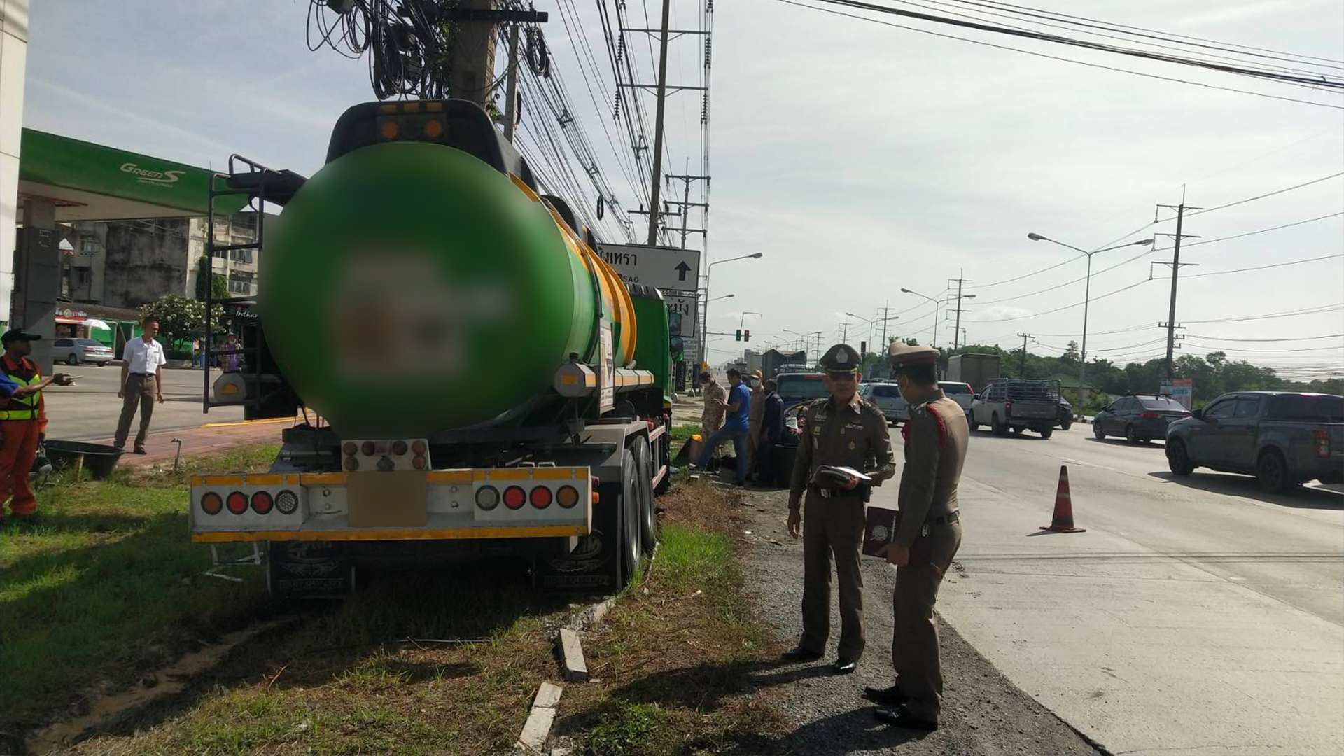 วันที่ 28 พ.ค.2567 เวลา 07.30 น.พ.ต.อ.จิรวัฒน์ ยอดกระโหม ผกก.สภ.แสนภูดาษ พร้อมด้วยพ.ต.ท.พานุรักษ์ เรืองขำ พนักงานสอบสวน สภ.แสนภูดาษ นายรุ่ง ทองเกตุแก้ว นายก อบต.คลองประเวศ เจ้าหน้าที่บริษัทโตโยต้าบ้านโพธิ์ ได้เดินทางไปตรวจสอบอุบัติเหตุด้วยตนเอง บริเวณหน้าปั้มบางจาก ขาเข้าเมือง พบรถยนต์บรรทุกสารเคมี (HYDROCHLORIC ACID 35%) ซึ่งเป็นสารสำหรับผลิตน้ำยาซักผ้าและส่วนผสมของอาหาร ซึ่งมีใบอนุญาตถูกต้อง