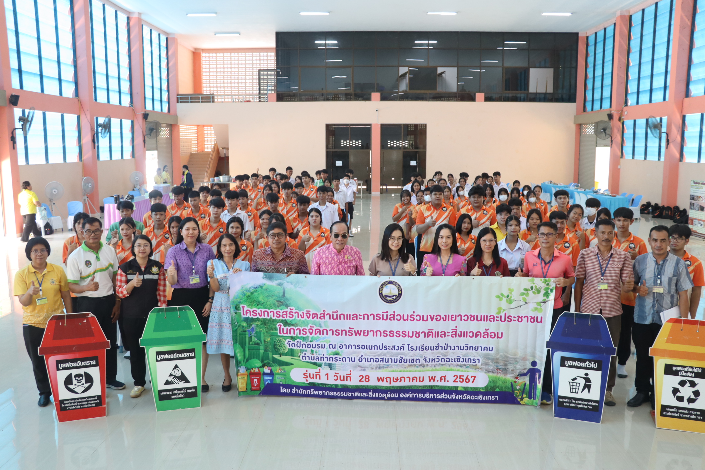 วันที่ 28 พฤษภาคม 2567 นายกิตติ เป้าเปี่ยมทรัพย์ นายกองค์การบริหารส่วนจังหวัดฉะเชิงเทรา มอบหมายให้ นายธนพัฒน์ เจียรสถิต รองนายกองค์การบริหารส่วนจังหวัดฉะเชิงเทรา เป็นประธานเปิดโครงการสร้างจิตสำนึกและการมีส่วนร่วมของเยาวชนและประชาชนในการจัดการทรัพยากรธรรมชาติและสิ่งแวดล้อม