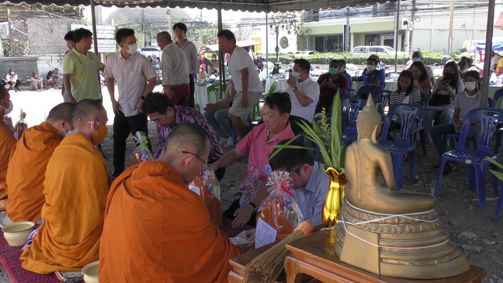 ที่บริเวณสถานก่อสร้างเดอะริช 6 พระยาสัจจา ต.เสม็ด อ.เมือง จ.ชลบุรี นายวินัย พ้นภัยพาล นายกเทศมนตรีเมืองอ่างศิลา เป็นประธานในพิธีตอกเสาเอกเดอะริช 6 พระยาสัจจา พระครวิสิฐธรรมโสภณ (หลวงพ่อสง่า) เจ้าอาวาสวัดเขาไม้แดง พระเกจิดังเบิกพระธรณี มีกินไม่รู้สิ้น เป็นประธานฝ่ายสงฆ์ และเจิมเสาเอก เพื่อความเป็นสิริมงคลก่อนเริ่มก่อสร้าง