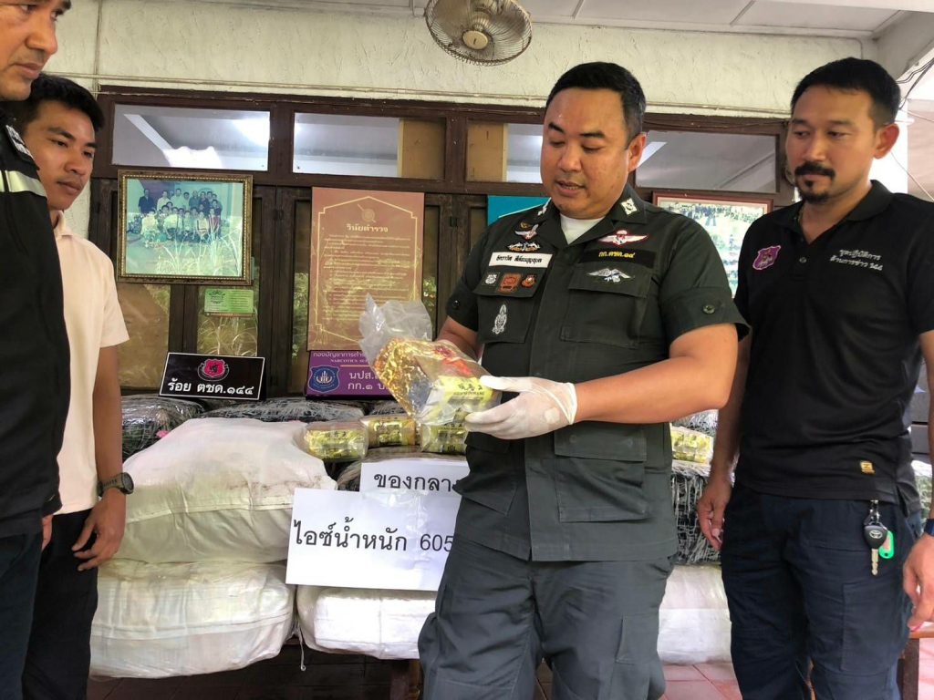 วันที่31พ.ค. 67 พ.ต.อ.อัคราวัส สีห์ธนบุญอุบล ผกก.กองกำกับการตำรวจตระเวนชายเเดนที่ 14 ร.ต.ต.สุวัชชัย สดใส หัวหน้า ชปส.ร้อย ตชด.144 จ.ส.ต.พรพีพัฒษ์ บัวจำรัส จนท.ชปส.ร้อย ตชด.144, ส.ต.ท.ภาณุเดช สังสนั่น ผบ.หมู่กก.ตชด.14, ส.ต.ท.จตุพร สิงหาปัด ผบ.หมู่ กก.ตชด.14, ส.ต.ท.อดิศร ปิ่นแก้ว จนท.ชปส.ร้อย ตชด.144 พร้อมด้วย ตำรวจสอบสวนกลาง ได้ร่วมกันจับกุมตัว นายประยงค์ (สงวนนามสกุล)อายุ40ปี พร้อมด้วย นายรณชัย (สงวนนามสกุล) อายุ34 ปี พร้อมตรวจยึดของกลาง เป็นยาไอซ์บรรจุอยู่ในถุงชาสีทอง ยี่ห้อGUANYINWANG นำหนัก605กิโลกรัม รถตู้ ยี่ห้อโตโยต้า สีเทา ป้ายทะเบียน ฮว- 3980 กรุงเทพ ที่ใช้ก่อเหตุ จำนวน1คัน ได้ที่บริเวณท่าเทียบเรือ ถ.วัดบางหญ้าแพรก-อันนาลัย ต.บางหญ้าแพรก อ.เมืองสมุทรสาคร