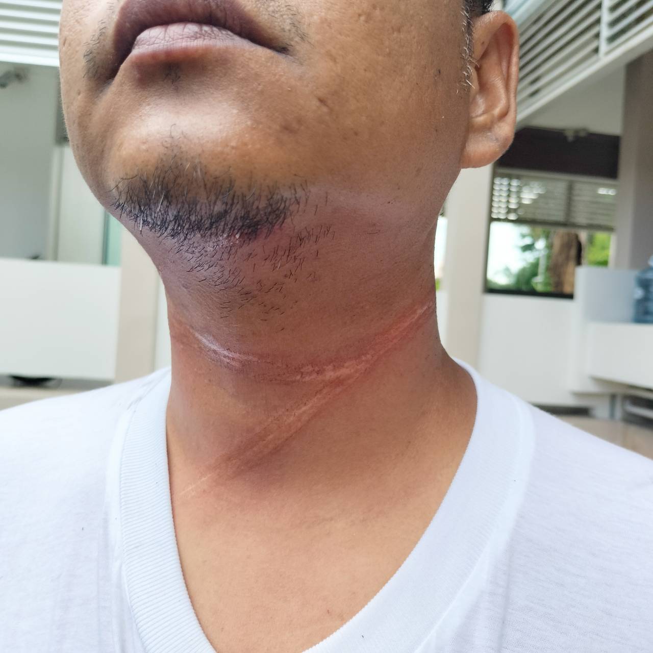 โดยมีเจ้าหน้าที่ออกมายืนให้สัญญาณปิดถนนไม่ให้รถทุกชนิดผ่าน เพื่อทำการยกเสาไฟฟ้าขึ้น แต่เกิดความผิดพลาดในการยกเสา ทำให้เสาไฟฟ้าร่วงหล่นลงมาทับสายสื่อสาร และเป็นช่วงเดียวกับที่เจ้าหน้าที่ได้ปล่อยให้รถผ่านได้ จึงทำให้สายสื่อสารเหวี่ยงมาเกี่ยวรัดคอของนายนิวัฒน์ โชคดีที่เป็นจังหวะขณะเคลื่อนรถออกมาแบบช้าๆ หากขับขี่มาด้วยเร็วคงไม่น่ามีชีวิต รอดเป็นแน่