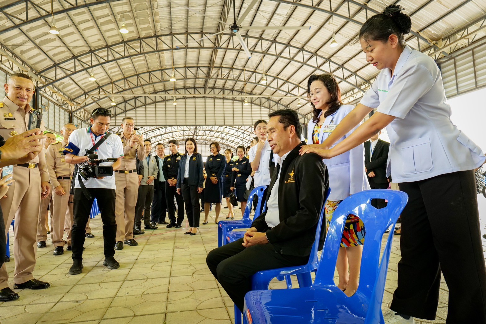 ในการจัดพิธีมอบสัญญาเช่าที่ดินให้ประชาชนในพื้นที่ป้อมพระจุลจอมเกล้าฯ ของ กองทัพเรือ เมื่อ 5 มิถุนายน 2567 นั้น นาวาเอกหญิง ผุสดี หิรัญอัศว์ รองผู้อำนวยการ รพ.สมเด็จพระปิ่นเกล้า และผอ.ศูนย์สุขภาพ(คลองมอญ)และWellness Center เปิดเผยว่าน้องที่นวด นาย สุทิน คลังแสง รัฐมนตรีว่าการกระทรวงกลาโหมได้แก่ นางสาวอันวรินญญ์ เกียรติปัญญาวุฒา จบการศึกษาจากมหาวิทยาลัยราชภัฏสวนสุนันทา โดยน้องสมายแจ้งว่า หลังจากที่ได้ มีการตรวจบริเวณสะบักทั้ง 2 ข้าง พบว่า มีการแข็งตึงของกล้ามเนื้อข้างขวา จึงได้นวดสะบัก ทั้งสองข้าง ใช้เวลาประมาณ 5 นาที ทำให้กล้ามเนื้อบริเวณสะบักคลายตัวและอาการปวดสะบักลดลง ช่วยให้กล้ามเนื้อ บริเวณสะบักที่มีการแข็งเกร็งผ่อนคลาย ท่านบิ๊กทิน