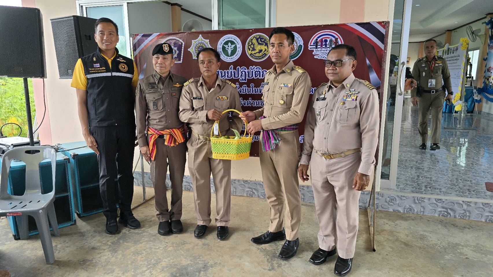 เมื่อวันจันทร์ที่ 10 มิถุนายน 2567 เวลา 10.00 น. ณ ศูนย์เรียนรู้ บ้านโคกลอย หมู่ 9 ตำบลแหลมทอง อำเภอหนองบุญมาก จังหวัดนครราชสีมา นายพิชาญ ตราผักแว่น นายอำเภอหนองบุญมาก เป็นประธาน พร้อมด้วย พ.ต.อ.ฉัฐวัชร วงศ์วาสน์ รอง ผบก.ภ.จว.นครราชสีมา พ.ต.อ.ธนภัทร เพชรอรุณ ผกก.สภ.หนองบุญมาก สาธารณสุข กำนัน ผู้ใหญ่บ้าน ร่วมกัน เปิดโครงการชุมชนบำบัดอย่างยั่งยืนในพื้นที่แพร่ระบาดยาเสพติด