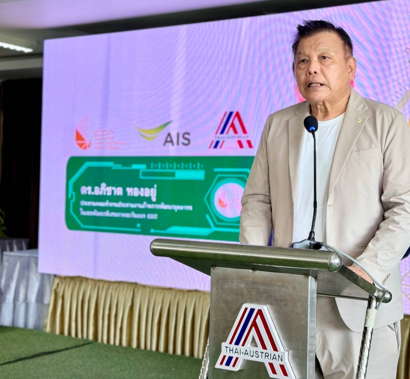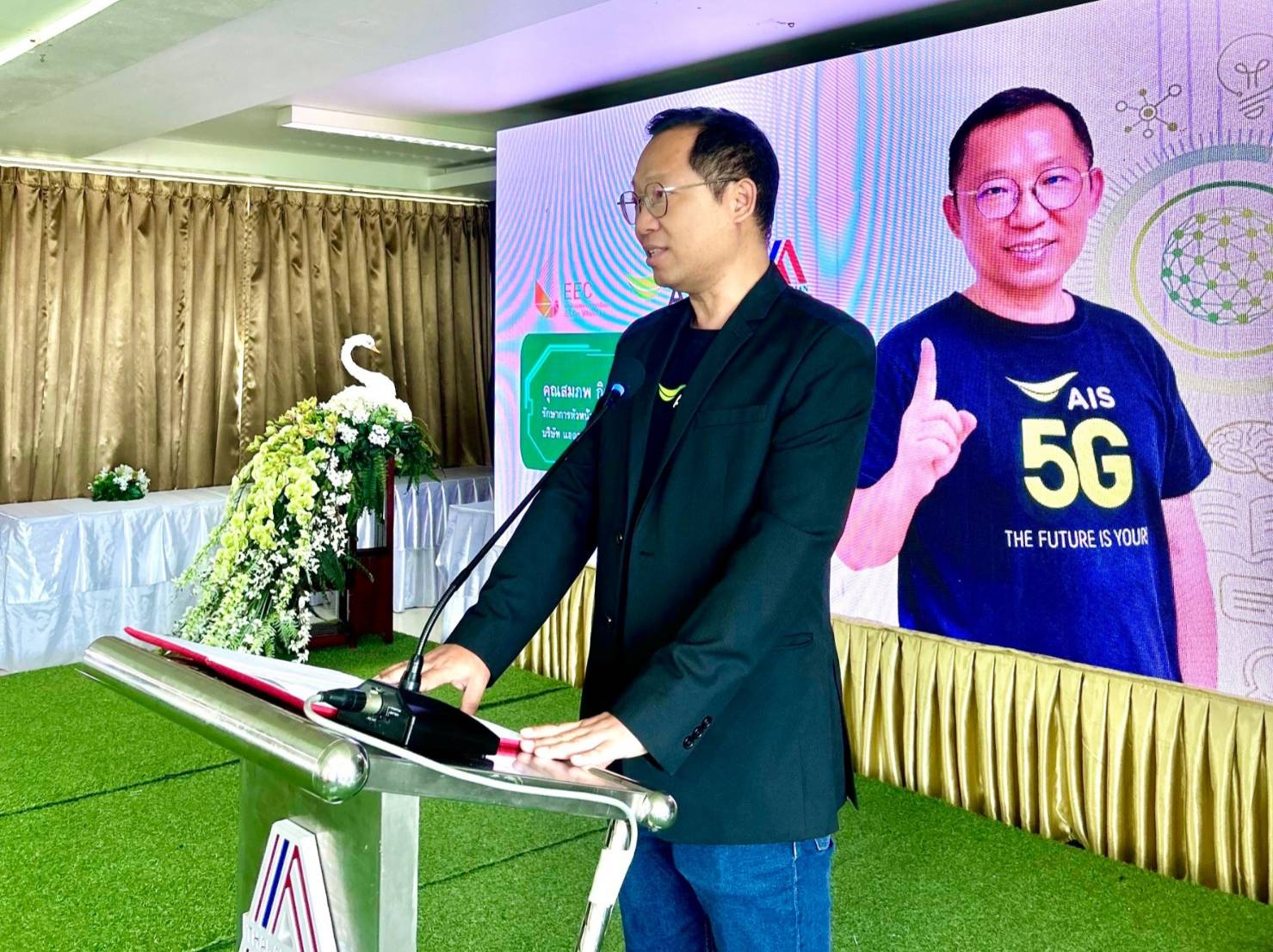 นายสมภพ กิตติวิรุฬห์วัฒน รักษาการ หัวหน้างานปฏิบัติการภูมิภาค ภาคตะวันออก เอไอเอส กล่าวว่า “AIS มีเป้าหมายในการนำเทคโนโลยี 5G มาพัฒนาเพื่อยกระดับประสบการณ์ดิจิทัล และเพิ่มประสิทธิภาพการทำงานของทุกภาคส่วนในทุกมิติโดยเฉพาะอย่างยิ่งภาคการศึกษา ที่นับว่าเป็นรากฐานสำคัญต่อการเติบโตของประเทศ ในอนาคต จึงทำให้ที่ผ่านมา AIS ทำงานร่วมกับสถาบันการศึกษาชั้นนำทั่วประเทศเพื่อเป็นการส่งต่อองค์ความรู้ และนำศักยภาพด้านดิจิทัลเทคโนโลยีของเราขยายผลให้เกิดการผลักดันแรงงานสู่ตลาดอุตสาหกรรมต่างๆ โดยเฉพาะอุตสาหกรรม ในพื้นเขตพัฒนาพิเศษภาคตะวันออก หรือ EEC ซึ่งปัจจุบันได้ขยายเครือข่าย 5G ครอบคลุมแล้ว 100% ในบริเวณที่มีการใช้งาน รวมถึงเริ่มทดลอง ทดสอบ 5G Use case แล้วตั้งแต่ปี 62 เป็นต้นมา”