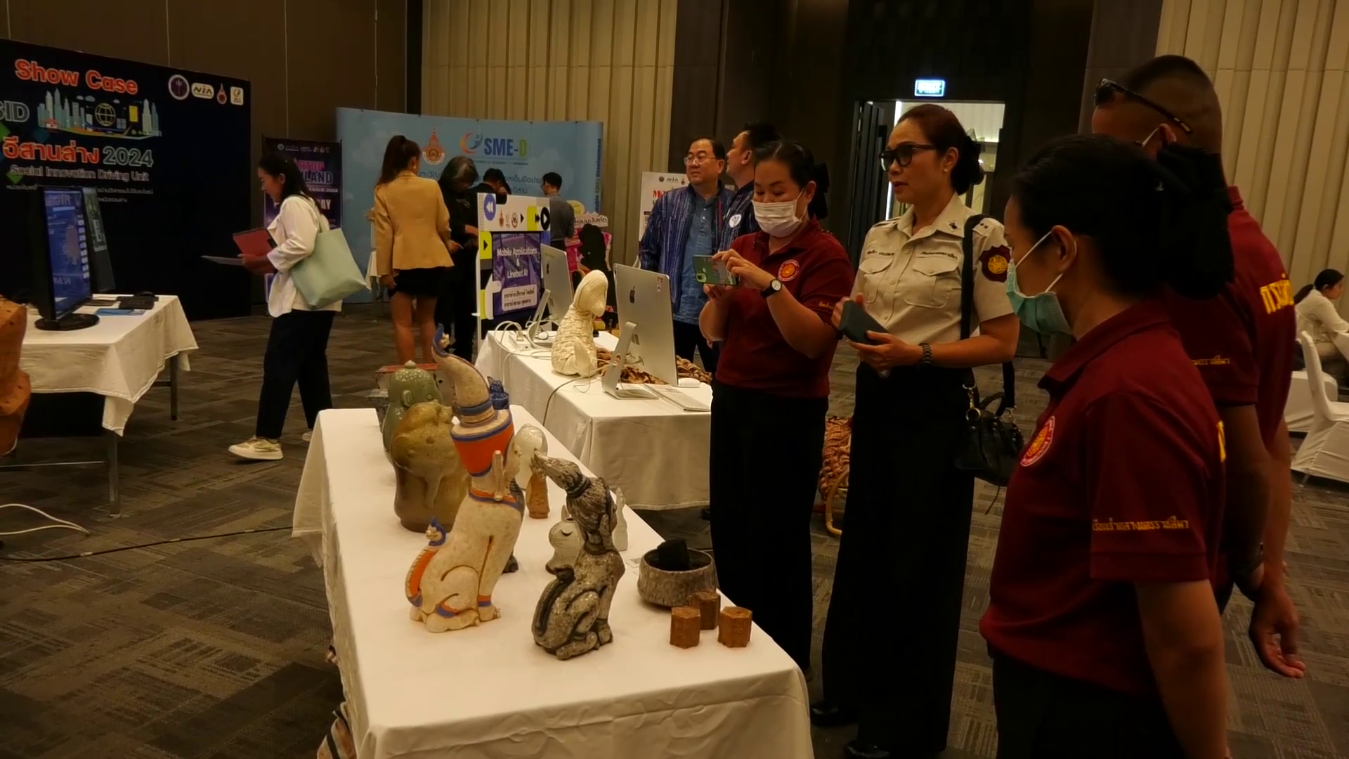 วันที่ 13 มิถุนายน 2567 ดร.สุรอรรถ ศุภจัตุรัส รองผู้อำนวยการด้านเศรษฐกิจและสังคม สำนักงานนวัตกรรมแห่งชาติ(องค์การมหาชน) NIA ประธานในพิธีพร้อมด้วยคณะผู้บริหารและเจ้าหน้าที่สำนักงานนวัตกรรมแห่งชาติ(องค์การมหาชน) รองศาสตราจารย์ ดร.บัณฑิต กฤตาคม รองอธิการบดีฝ่ายวิจัย พัฒนานวัตกรรมและบริการวิชาชน มหาวิทยาลัยเทคโนโลยีราชมงคลอีสาน ผู้ชายศาสตราจารย์ ดร.บุญญาพร ดวงสา ผู้อำนวยการสถาบันชุณหะวัณเพื่อการพัฒนาธุรกิจเอสเอ็มอีอย่างยั่งยืน มหาวิทยาลัยเทคโนโลยีราชมงคลอีสาน ได้ร่วมกันเปิดกิจกรรมแถลงผลการดำเนินงานหน่วยขับเคลื่อนวัตกรรมเพื่อสังคม เพื่อนำนวัตกรรมไปใช้ประโยชน์อีสานตอนล่าง ที่โรงแรมแคนทารี ห้องประชุมลำตะคอง 2 ต.ในเมือง อ.เมือง จ.นครราชสีมา โดยภายในงานได้มีนวัตกรรมต่างๆทั้งสิ้นจำนวน 13 ผลงาน ซึ่งได้ต่อยอดไปให้กับทางชุมชน 33 ชุมชน ซึ่งเป็นผลงานอยู่ในระดับที่ดีและมีมาตรฐานสำหรับชุมชนและท้องถิ่นอีกด้วย