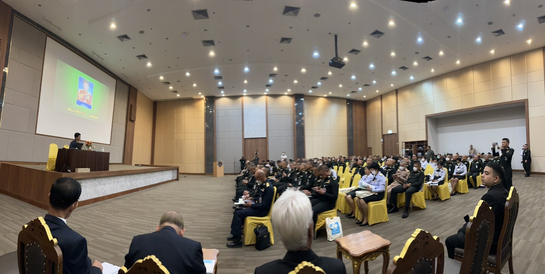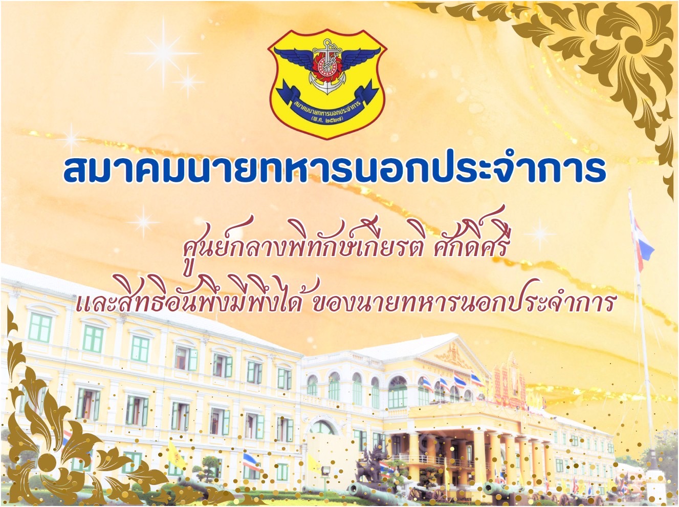 วันที่ 14 มิ.ย.67 พลเอกวินัย ภัททิยกุล นายกสมาคมนายทหาร นอกประจำการ มอบหมายให้กรรมการฯ 6 ท่าน ประกอบด้วย พลเอกอนันต์ ยุทธารักษ์ อุปนายกสมาคม พลเอก มณฑล บำรุงพฤกษ์ กรรมการและนายทะเบียน พลเอกพัชราวุธ วงษ์เพชร กรรมการและสวัสดิการ พลเรือเอกเชษฐา ใจเปี่ยม กรรมการและประชาสัมพันธ์ พลตรีหญิงวัชราวรรณ วีระรัตนกุล กรรมการ พลตรีหญิงอุไรพงศ์ สังขวาสี กรรมการและผู้ช่วยสวัสดิการ แนะนำสมาคมฯ ในการปัจฉิมนิเทศ สำหรับผู้เกษียณอายุราชการ และผู้เข้าร่วมโครงการเกษียณอายุราชการก่อนกำหนด ประจำปีงบประมาณ 2567 ณ ห้องศรีสมาน 3 ชั้น 2 อาคารอเนกประสงค์ สำนักงานปลัดกระทรวงกลาโหม (ศรีสมาน)