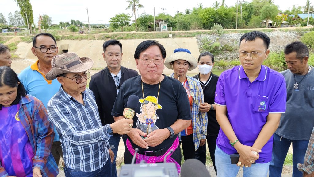 นายประภัตร โพธสุธน อดีตรัฐมนตรีช่วยว่าการกระทรวงเกษตรและสหกรณ์ กล่าวว่าวันนี้เข้าสู่ฤดูทำนาของชาวนาอย่างเป็นทางการ ทุกปีเรามีทั้งน้ำฝน และน้ำที่ส่งมาจากเขื่อนเจ้าพระยา แต่ปีนี้เกิดภาวะฝนทิ้งช่วง มีฝนตกเล็กน้อยเป็นบางครั้ง ทำให้น้ำขาดแคลนปกติคลอง มอ.จะรับผิดชอบพื้นที่การเกษตรหลายแสนไร่ แต่วันนี้น้ำกลับมาได้ไม่ถึงครึ่งทางคลองมะขามเฒ่า – อู่ทอง รับน้ำมาจากโครงการส่งน้ำและบำรุงรักษาพลเทพ ระยะทางยาว 105 กิโลเมตร วันนี้น้ำมาถึง ก.ที่ 47 ดังนั้นปัญหาที่เกิดขึ้นคือพี่น้องเกษตรกรได้หว่านข้าวหมดแล้ว