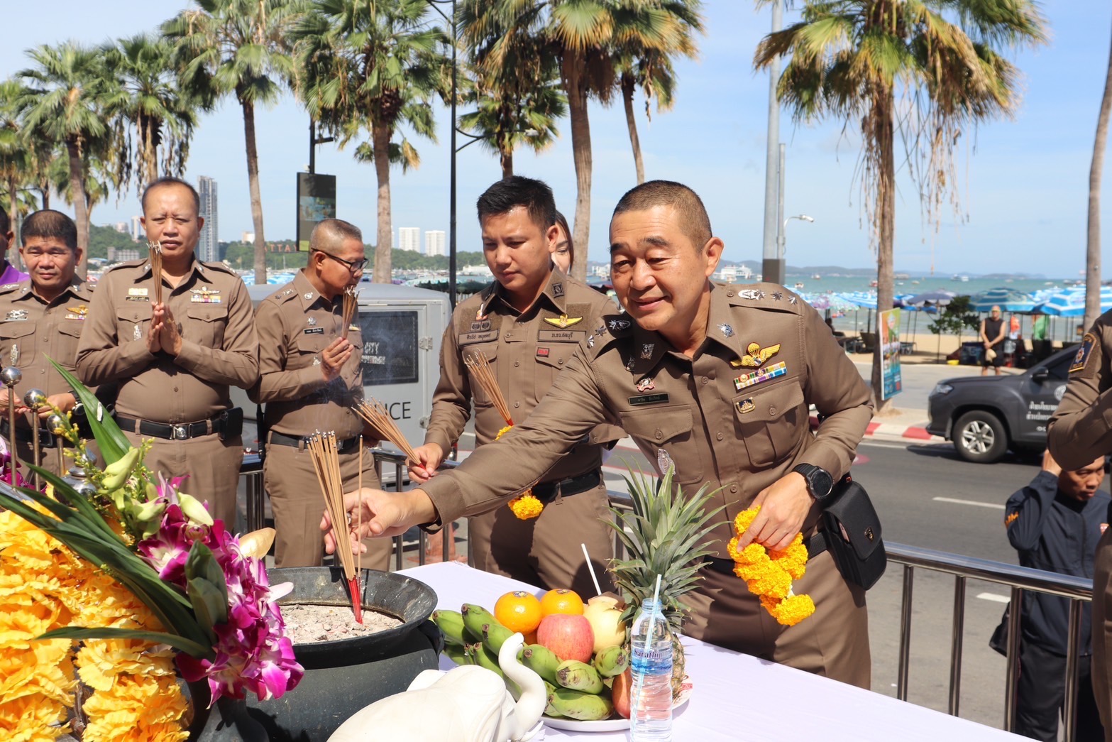 วันที่ 19 มิ.ย.67 ที่ สภ.เมืองพัทยา พ.ต.อ.นาวิน ธีระวิทย์ ผกก.สภ.เมืองพัทยา พร้อมด้วย พ.ต.ท.ศิรชัช หนูเทศ รอง ผกก.ป.สภ.เมืองพัทยา พ.ต.ท.ภาณุพงษ์ นิ่มสุวรรณ์ สว.จร.สภ.เมืองพัทยา พ.ต.ท.ปกรณ์ หมื่นสีเขียว สวป.สภ.เมืองพัทยา พ.ต.ต.อภินันท์ บุญยรัตน์ สวป.สภ.เมืองพัทยา ร่วมพิธีทำบุญครบรอบ 40 ปี การก่อตั้งสถานีตำรวจภูธรเมืองพัทยา