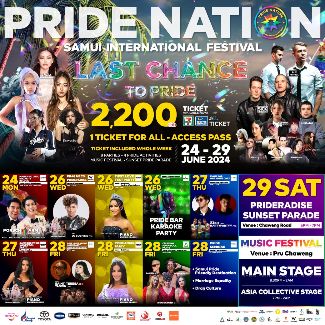วันที่ 20 มิ.ย. 2567 ผู้สื่อข่าวรายงานว่า ที่ท่าเรือเฟอร์รี่ ในตำบลอ่างทอง อำเภอเกาะสมุย จังหวัดสุราษฎร์ธานี ซึ่งเป็นประตูการเดินทางเข้ามายังเกาะสมุย พบว่า หลังคา ทางเดินบริเวณท่าเรือมีการนำผ้า และธงสีรุ้ง มาประดับเป็นทางยาว สร้างความสนใจให้กับนักท่องเที่ยว ที่เดินทางมา โดยพบว่ามีนักท่องเที่ยว ทั้งชาวไทยและชาวต่างชาติ ทันที ที่เดินผ่านมาถึงหลังคาสีรุ่ง ต่างยกโทรศัพท์มือถือ ขึ้นมาถ่ายภาพ และเช็คอินกับสถานที่ ที่มาเยือน ที่มีการต้อนรับด้วย สีสัน กับสายรุ้งและธงหลากสี สร้างความประทับใจให้กับนักท่องเที่ยว ที่ได้เดินทางมาสัมผัส