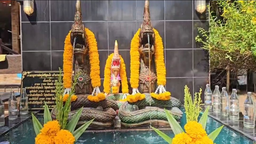 วันที่ 24 มิถุนายน 2567 ผู้สื่อข่าวลงพื้น ที่ร้านอาหารมาลองฟิน เลขที่ 46/7 เทศบาล10 ต.สระแก้ว อำเภอเมืองสระแก้ว จ.สระแก้ว ซึ่งตั้งอยู่ริมคลองพระสะทึงโดยมี นางฉวีวรรณ นาแพง อายุ 54 ปี หรือ”เจ๊แหม่ม”เจ้าของร้านอาหาร มาลองฟินได้เล่าให้ผู้สื่อข่าวฟังว่าตนเอง ได้ซื้อที่ดินแปลงนี้มาหลายปีแล้ว เลยได้มาปรับพื้นที่เพื่อทำร้านอาหาร ช่วงนั้นตนเองและครอบครัวลำบากมาก ล้มลุกคลุกคลาน มาตลอด จนได้ทำร้านอาหารเสร็จ เปิดมาได้4ปี ตอนนั้นตนเองลำบากมากๆ จนอยู่มาวันหนึ่งตนเองได้ฝันถึงพญานาคตัวใหญ่ ตนเองจึงได้ มาปรึกษากันกับครอบครัว ว่าอยากจะสร้างรูปปั้น พญานาคพ่อ ปู่ศรีสุทโธและแม่ย่าศรีปทุมมา ไว้ที่หน้าร้านเพื่อให้ลูกค้าและครอบครัวได้กราบไหว้บูชา จากนั้นก็ได้กราบไหว้บูชามาตลอด ทำให้ตนเองและครอบครัวได้มีโชคมีลาภติดๆกันมาตลอด จนสามารถ ผ่านพ้นวิกฤตต่างๆ มาได้ จนถึงปัจจุบันตนเองเชื่อว่า ด้วยแรงศรัทธาที่มี จึงส่งผลให้ตนเอง ได้ถูกรางวัลใหญ่ๆมาหลายครั้ง ก็ยิ่งทำให้ตนเองรู้สึกมีความเลื่อมใส ศรัทธา มากยิ่งขึ้น และไม่ใช่แต่ตนเองและครอบครัวเท่านั้นที่ได้โชคลาภ รวมไปถึงลูกน้องและลูกค้าในร้าน ก็ต่างพากัน พลอยมีโชคลาภไปตามๆกัน และเมื่องวดที่ผ่านมาตนเองได้จุดธูปบวงสรวงพ่อปู่ศรีสุทโธกับแม่ย่าศรีปทุมมา