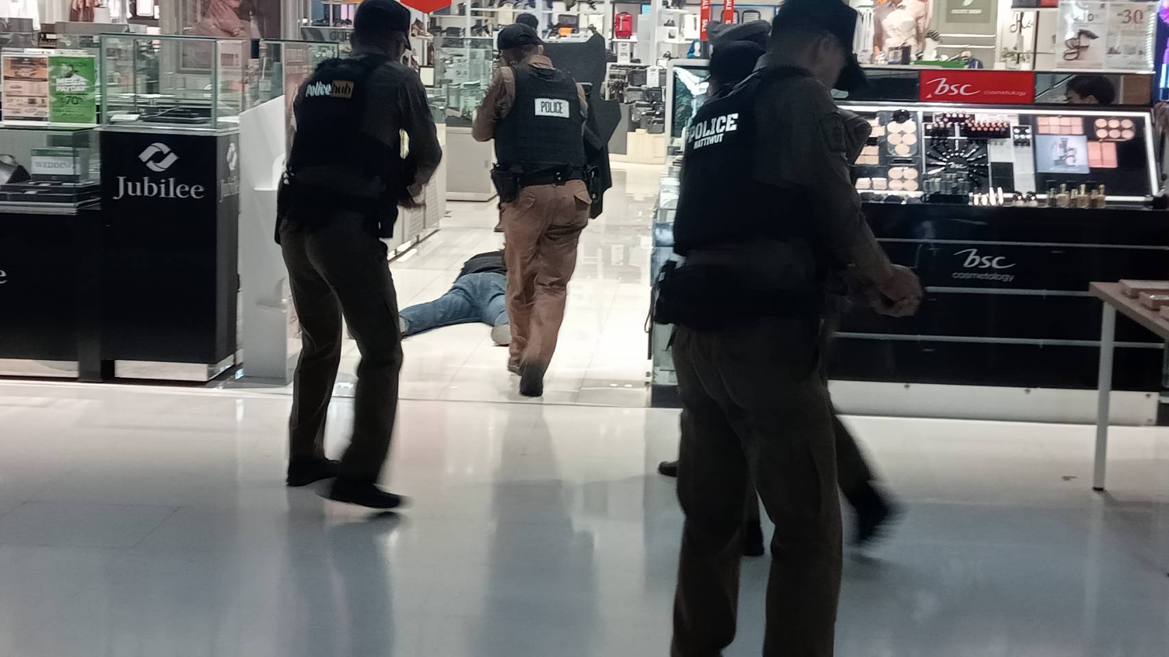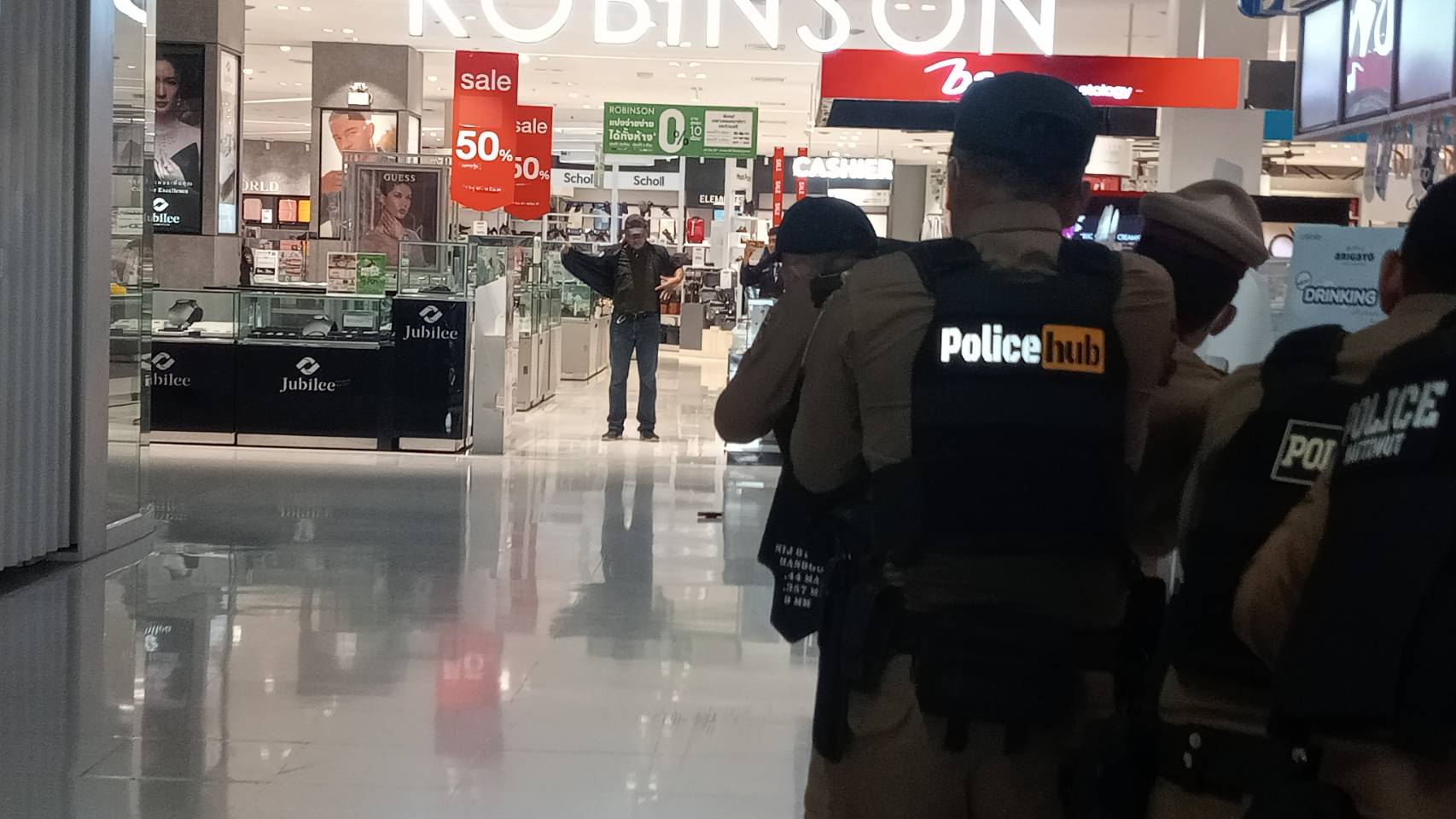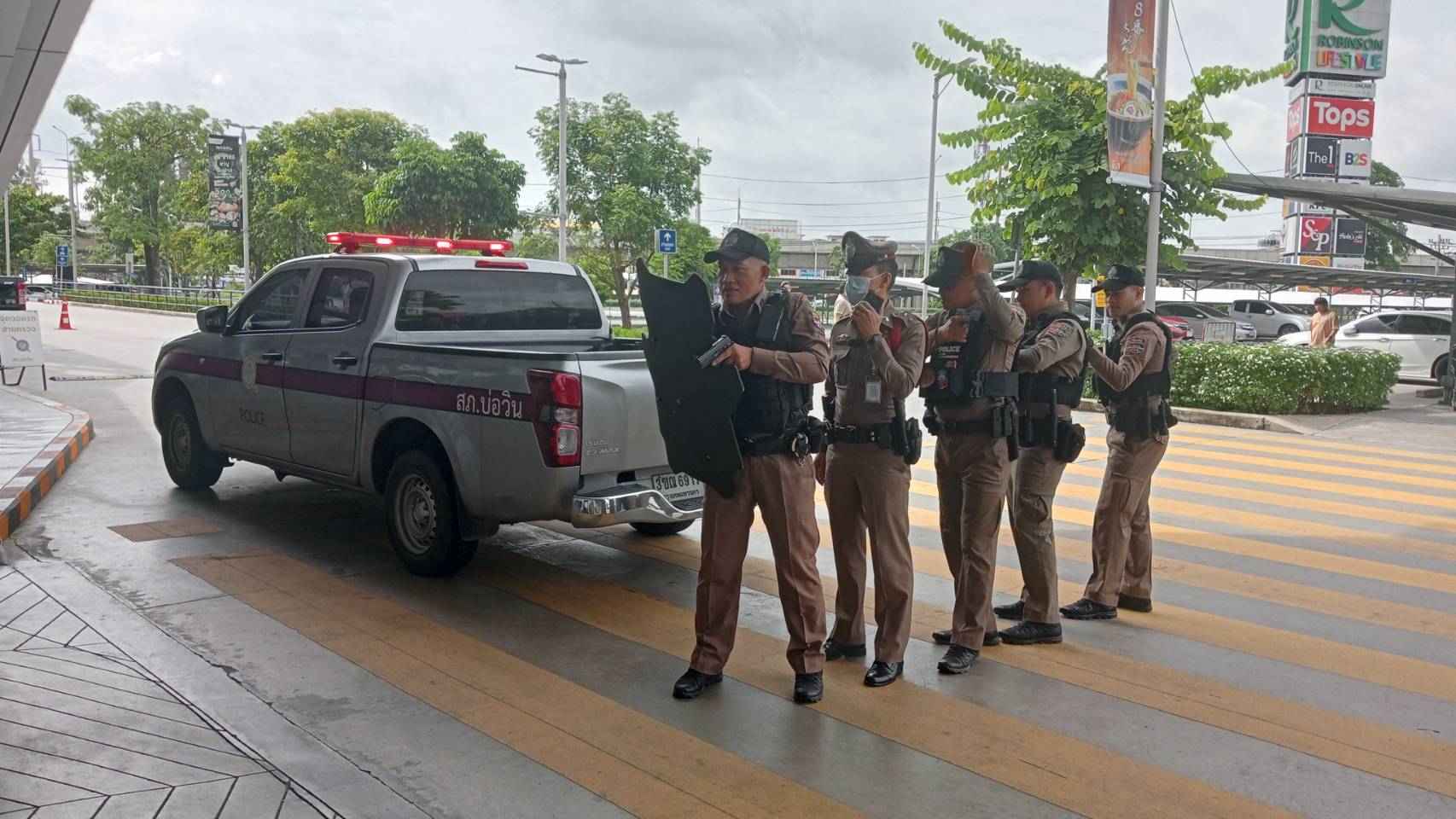 เมื่อเวลา09.30น.ของวันที่27มิ.ย.ที่ห้างสรรพสินค้าโรบินสัน สาขาบ่อวิน จ.ชลบุรี พ.ต.อ.เอนก สระทองอยู่ ผกก.สภ.บ่อวิน พร้อมด้วยพ.ต.ท.สุพรรณ ใจหาญ สวป พ.ต.ต.ชัชชัย ศรีพลัง สวป.(ชส.) มวลชนสัมพันธ์และเจ้าหน้าที่ตำรวจชุดป้องกันปราบปราม พร้อมด้วยเจ้าหน้าที่หน่วยกู้ภัยศีลธรรมสมาคมบ้านบึง จุดบ่อวิน ได้ทำการฝึกซ้อมพนักงานของทางห้างสรรพสินค้า สืบเนื่องจาก เคยมีเหตุการณ์คนร้ายคลุ้มคลั่งใช้อาวุธปืนแล้วกราดยิงประชาชนในห้าง สรรพสินค้า ทำให้มีผู้บาดเจ็บล้มตาย ทาง พ.ต.อ.เอนก ผกก.สภ.บ่อวิน ได้เปิดเผยว่า ทางสำนักงานตำรวจแห่งชาติ ห่วงใยในชีวิตทรัพย์สินของพี่น้องประชาชน แนวโน้มสถานการณ์วิกฤตในอนาคต มีโอกาสเกิด “มากขึ้น” และถี่ขึ้น” เนื่องจากพฤติกรรมเลียนแบบ สภาพสังคม การเลี้ยงดูที่เปลี่ยนไป สภาพเศรษกิจที่ตกต่ำ อาการป่วยทางจิต และการใช้สารเสพติด ทำให้เกิดเหตุการณ์สะเทือนขวัญ ในเหตุการณ์ที่ผ่านมา การบริหารเหตุวิกฤต