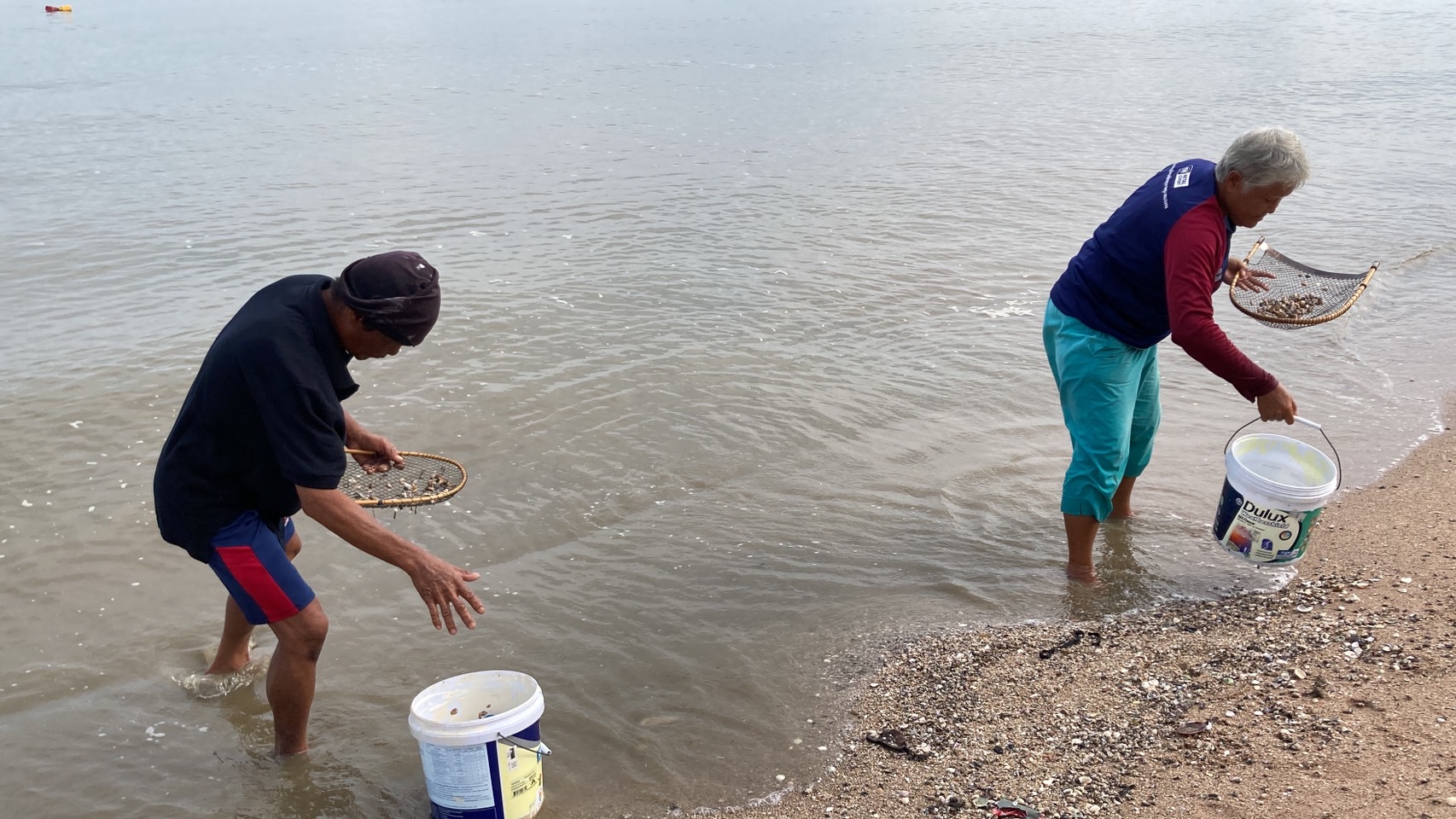 ทั้งนี้ ในช่วงเช้าก่อนน้ำทะเลจะลงชาวบ้านได้ใช้อุปกรณ์ตระแกรงเกลี่ยทรายเพื่อหาหอยเสียบ ซึ่งตกแล้วจำหน่ายอยู่ที่กิโลกรัมละ 60 บาท โดยออกมาหาหอยเพื่อนำกลับไปรับประทานลดค่าใช้จ่ายในครัวเรือน ซึ่งแต่ละวันจะมีชาวบ้านออกมาหาหอยกันบ่อยครั้ง เพราะสภาพแวดล้อมทางทะเลที่นี่ยังคงอุดมสมบูรณ์