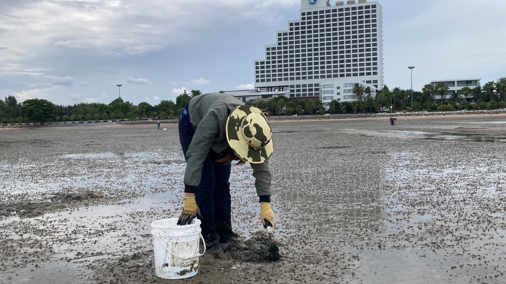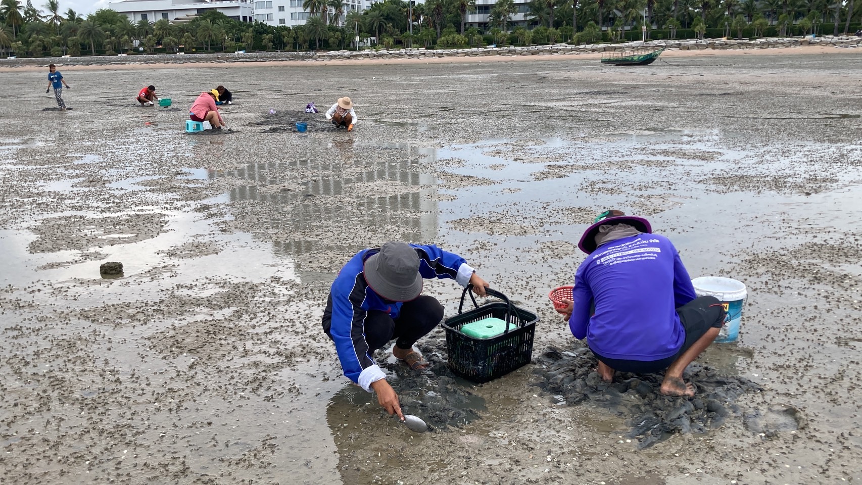 วันที่ 27 มิ.ย.67 ผู้สื่อข่าวรายงานว่า ชาวบ้านจำนวนหนึ่งได้นำอุปกรณ์ไปใช้เก็บหอยกันอย่างคึกคัก ที่บริเวณริมทะเลชายหาดกระทิงลาย เมืองพัทยา ภายในซอยโรงไม้ขีด หรือซอย 8 ถนนสุขุมวิทพัทยา อ.บางละมุง จ.ชลบุรี