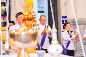โดยในเวลา 09.30 น. นายชลธี ยังตรง ผู้ว่าราชการจังหวัดฉะเชิงเทรา ประธานในพิธี เข้าสู่สถานที่ประกอบพิธีเวียนเทียนสมโภชน้ำพระพุทธมนต์ศักดิ์สิทธิ์ จุดธูปเทียนบูชาพระรัตนตรัย เจ้าหน้าที่อาราธนาศีล ประธานสงฆ์ให้ศีล
