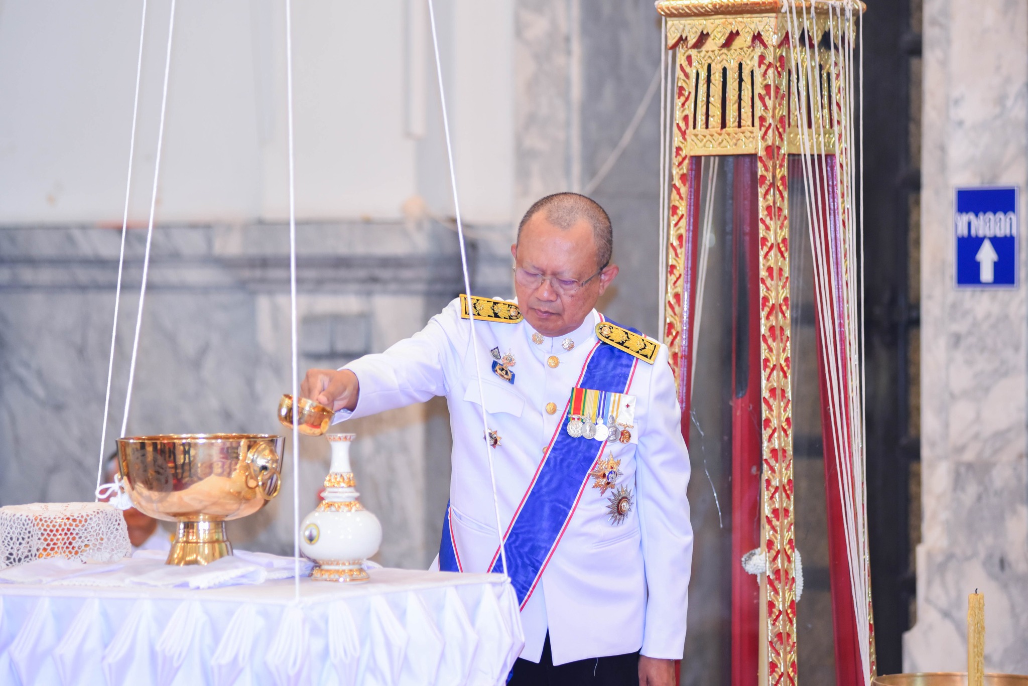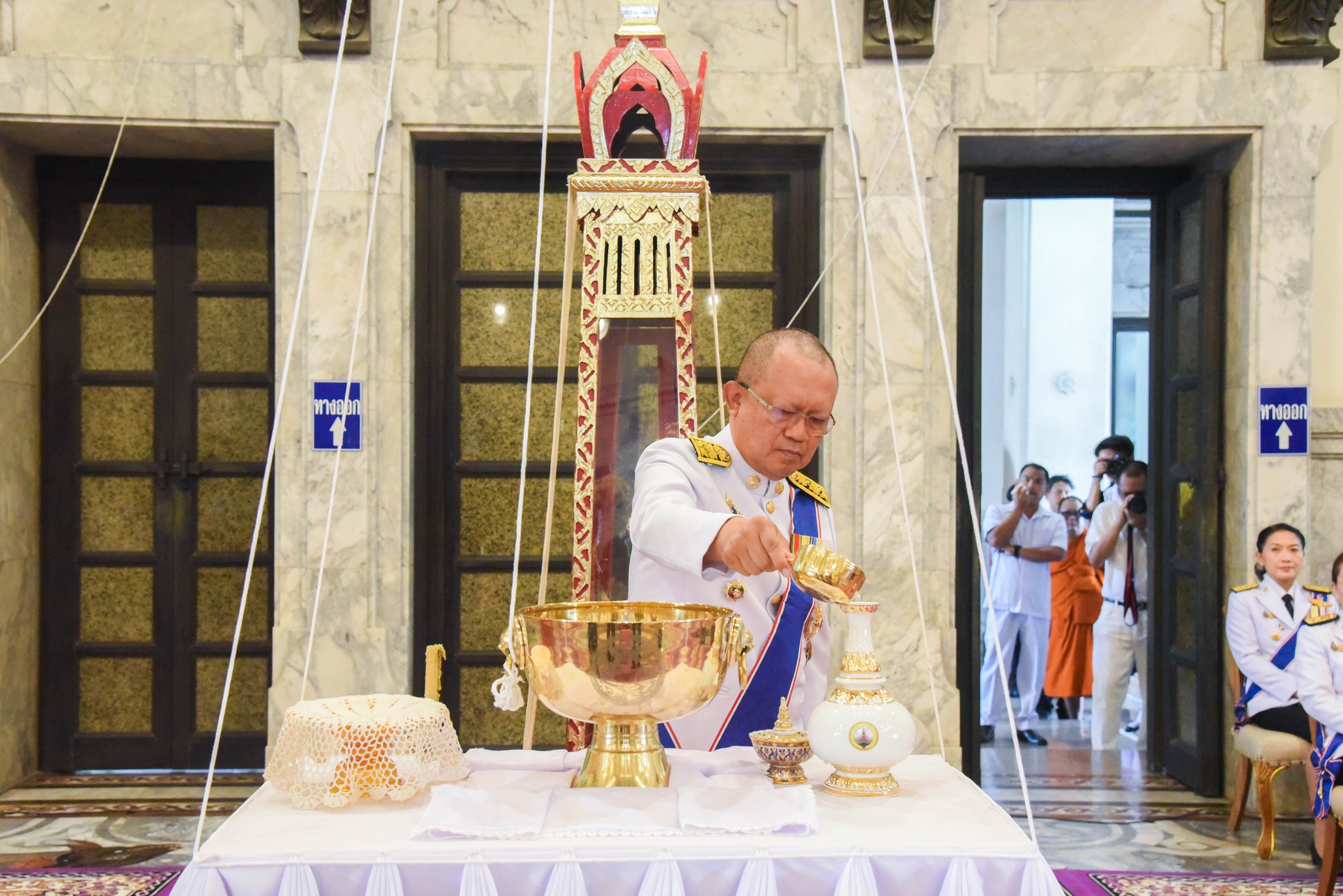 ผู้ว่าราชการจังหวัด ผู้ว่าราชการจังหวัด กล่าวคาถาตักน้ำ และตักน้ำพระพุทธมนต์ศักดิ์สิทธิ์จากขันสาครใส่คนโท จนถึงปริมาณคอคนโท แล้วปิดฝาคนโทให้สนิท