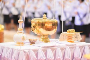 ผู้ว่าราชการจังหวัด เชิญใบพลู 7 ใบ ถวายประธานสงฆ์เจิมใบพลูแล้วถวายใบพลู 7 ใบ แด่พระสงฆ์เถราจารย์